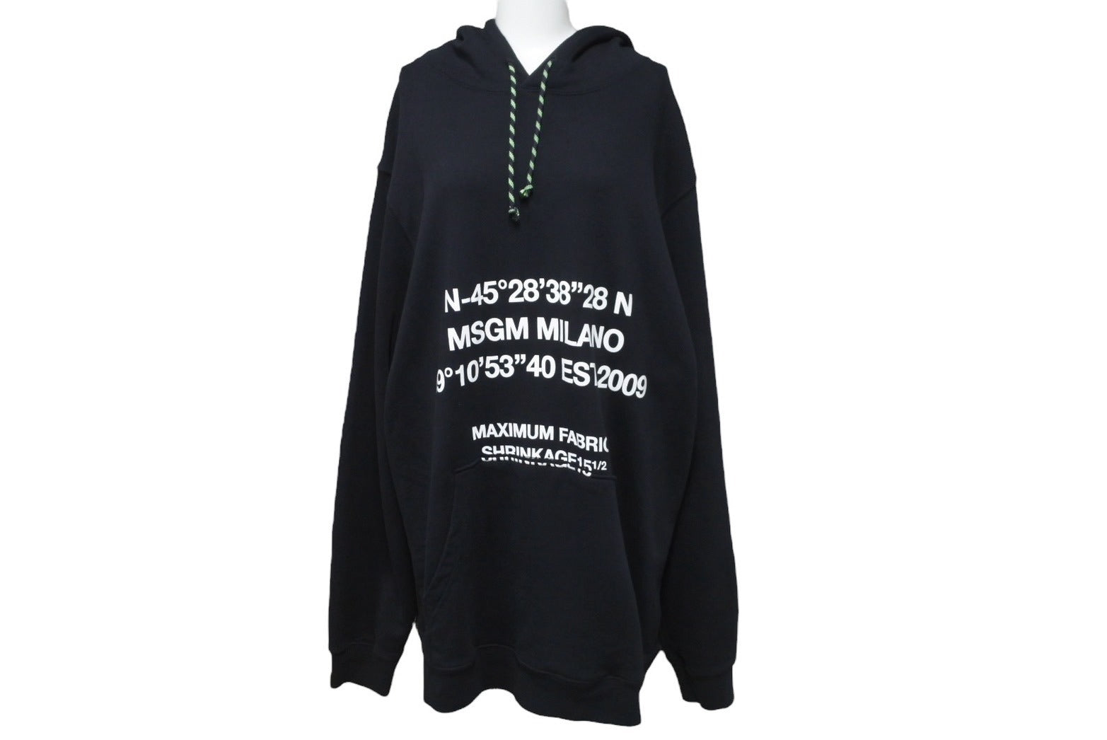 MSGM エムエスジーエム パーカー ブラック ホワイト サイズ L 3140MM182J コットン 美品 中古 63049