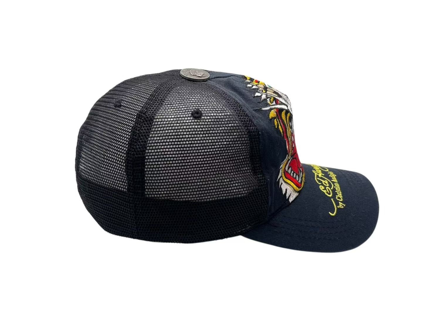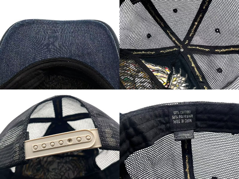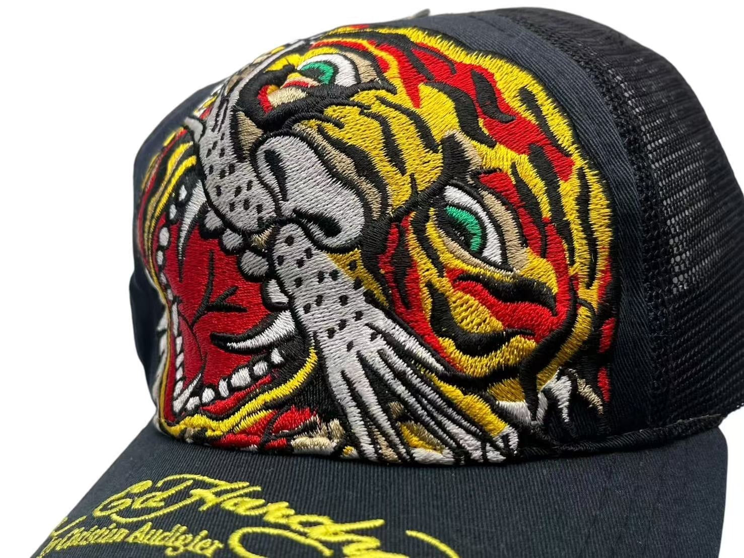 Ed Hardy エド ハーディー 刺繍メッシュキャップ 帽子 タイガー 虎 コットン ポリエステル ブラック イエロー 美品 中古 4b000517