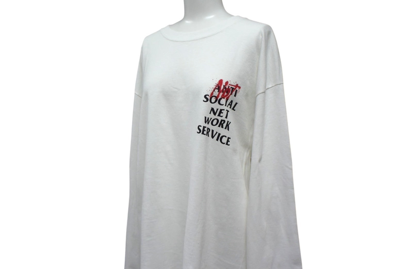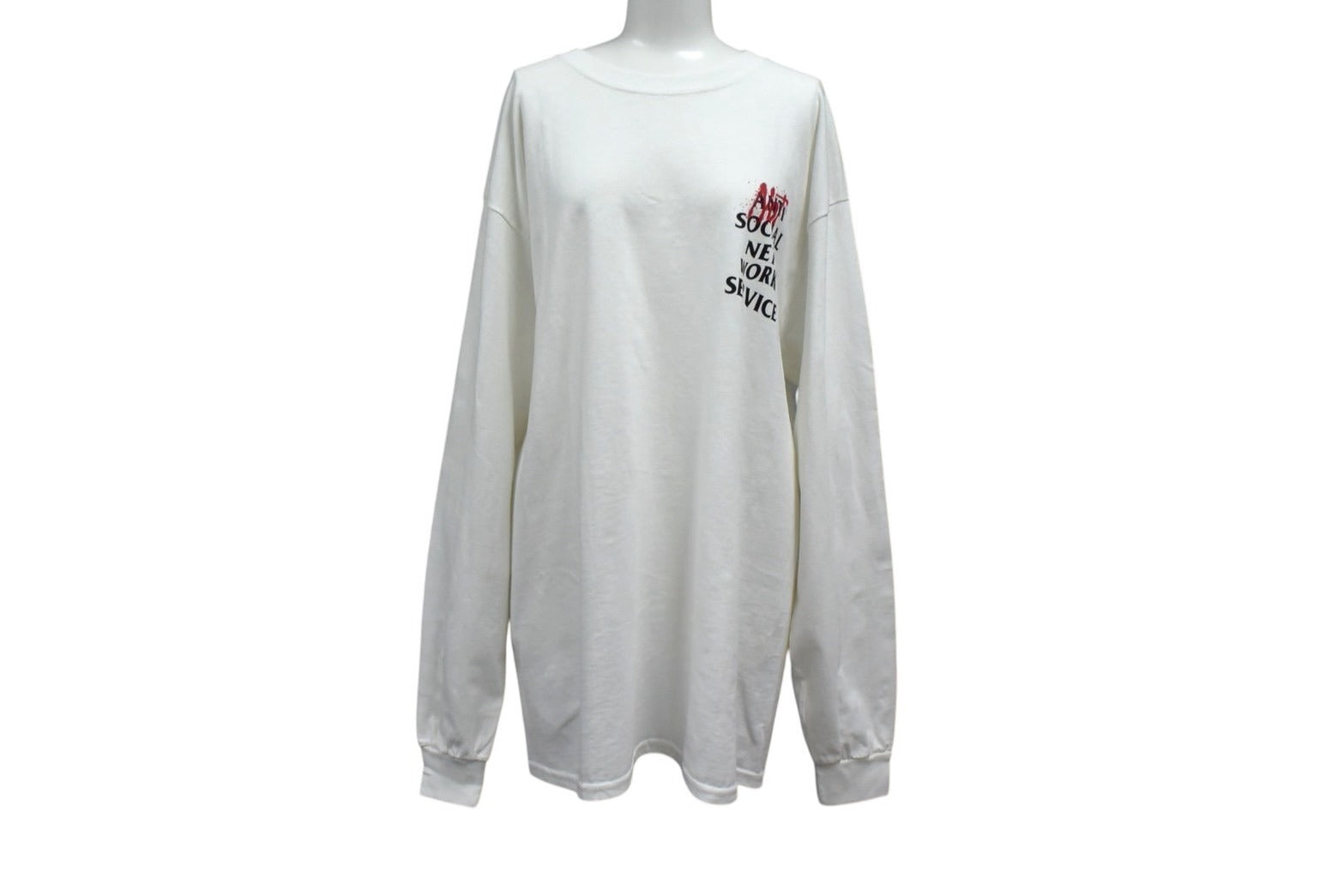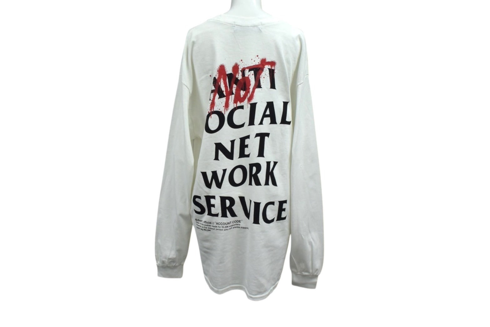 極美品 DUALISM デュアリズム NOT ANTI SNS 長袖Tシャツ ホワイト DLSM フォロワー1万人記念 コットン プリント サイズL 中古 4b000895