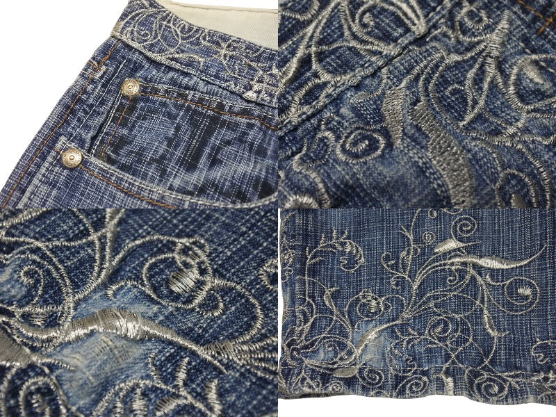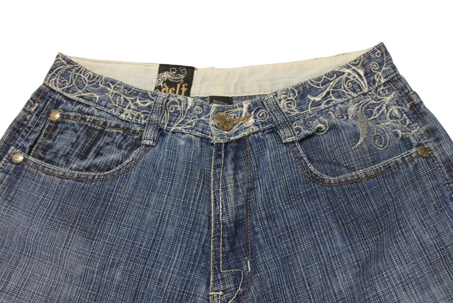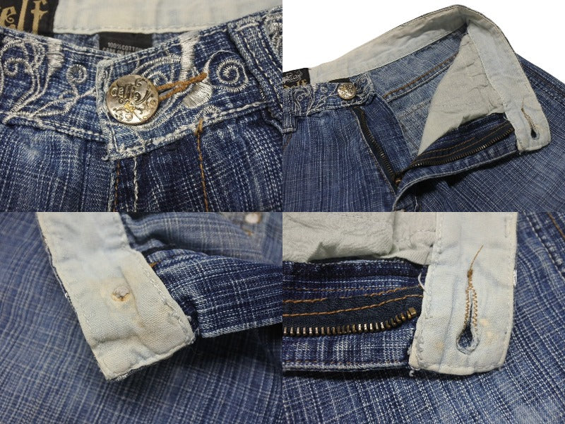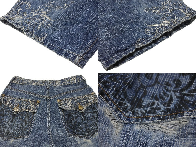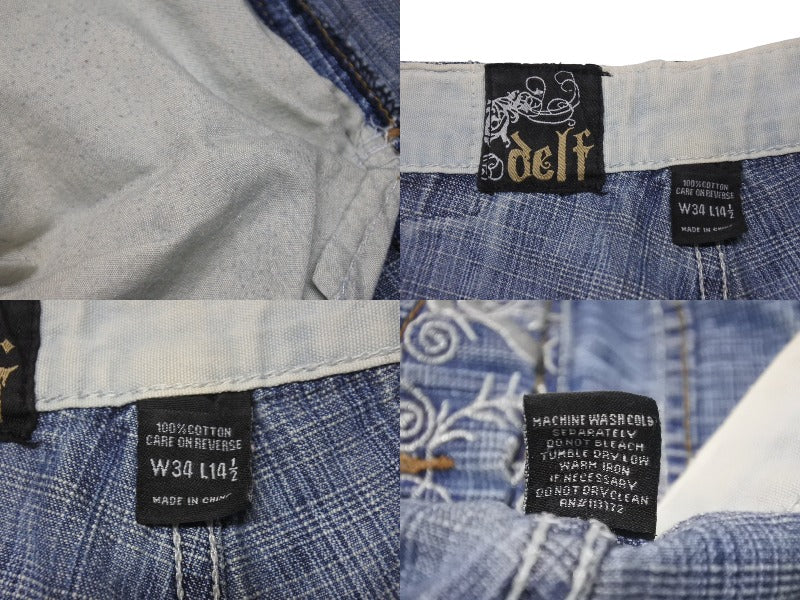 DELF デルフ Y2K エンブロイダリー バギーデニムショーツ ブルー コットン サイズ34 美品 中古 4b001343