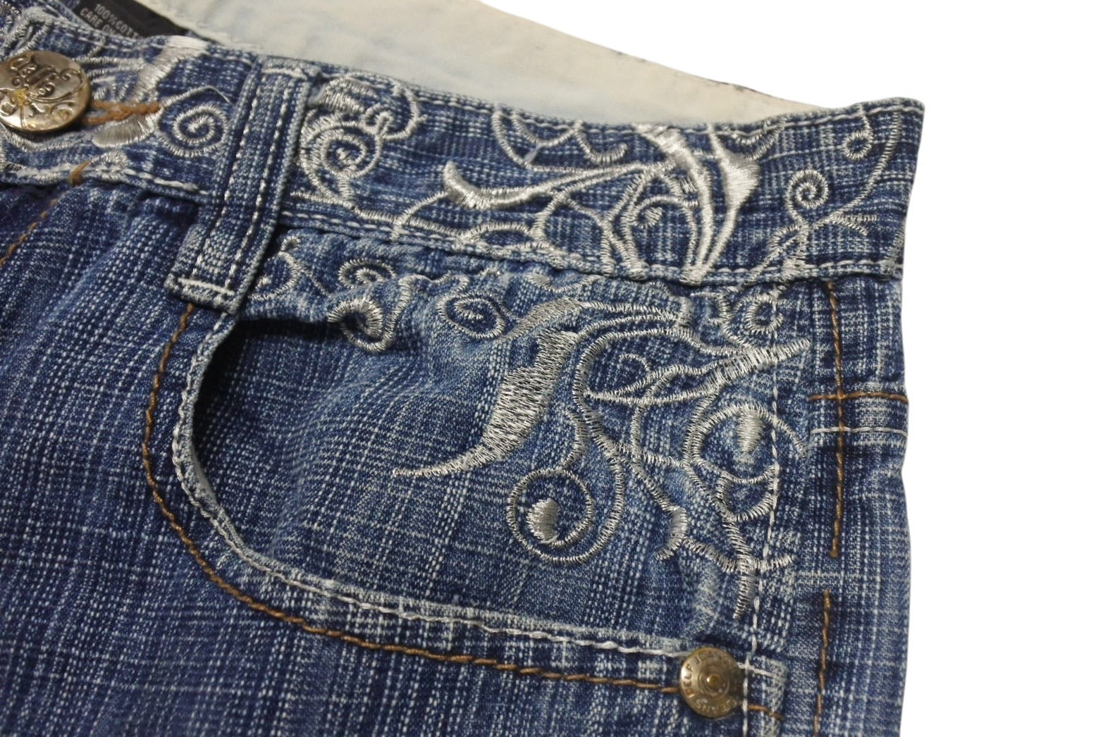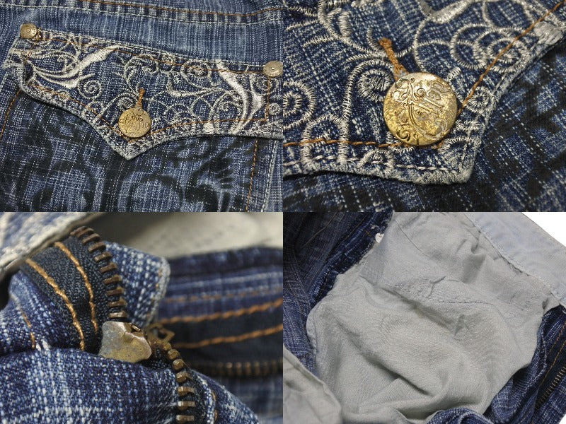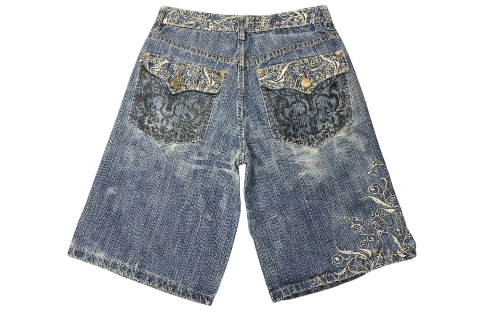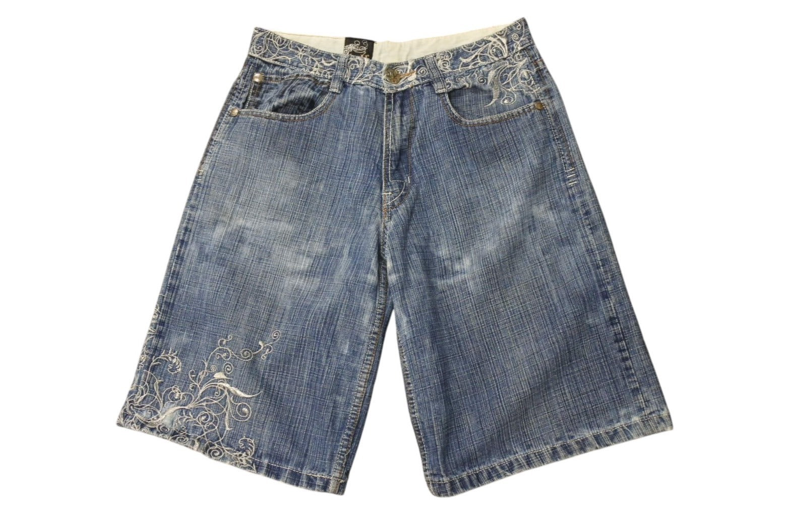 DELF デルフ Y2K エンブロイダリー バギーデニムショーツ ブルー コットン サイズ34 美品 中古 4b001343