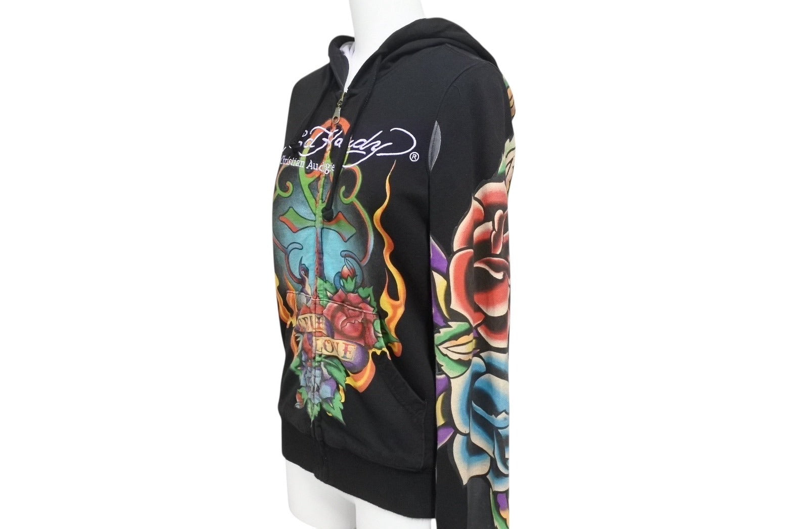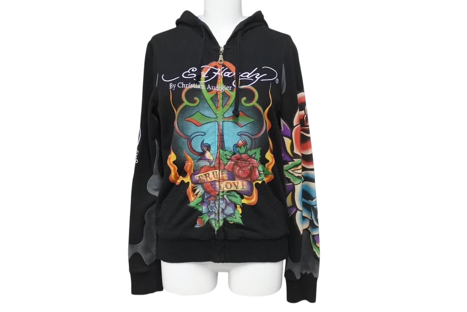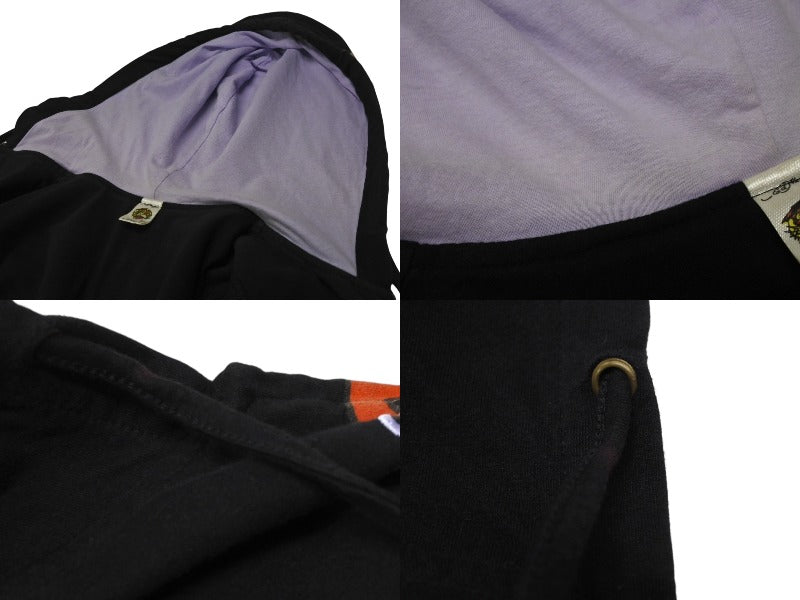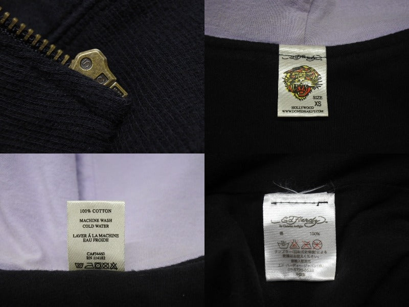 EdHardy エドハーディー ジップアップ フーディ― サイズxs コットン 刺繍 ブラック マルチカラー 美品 中古 4b002003