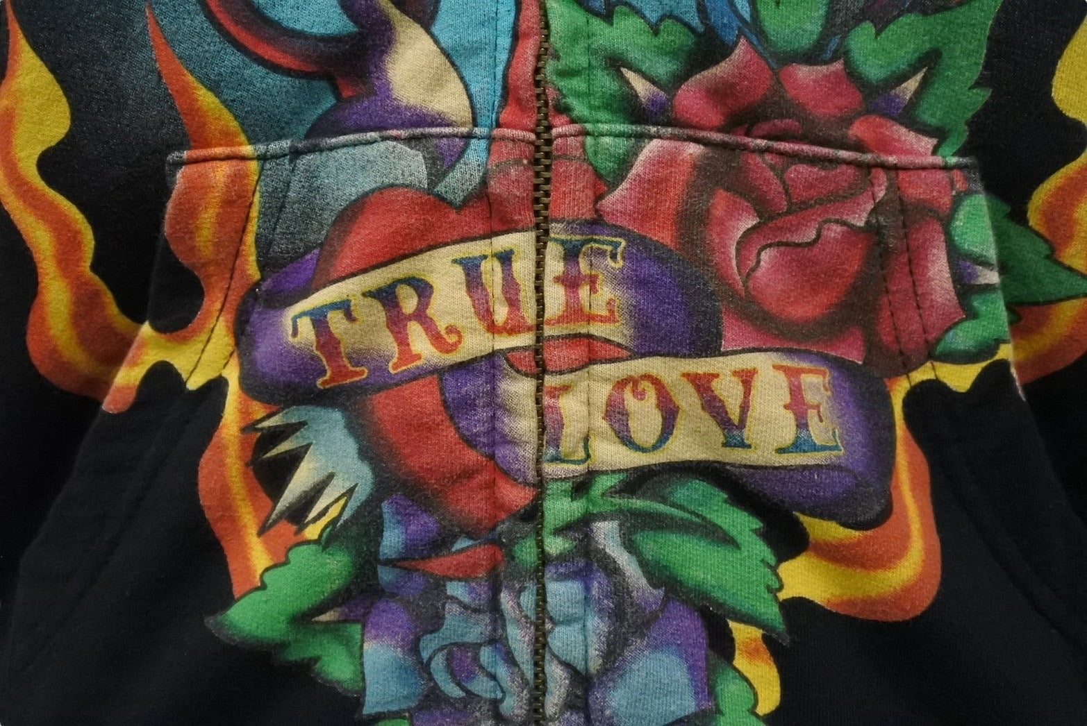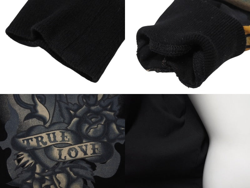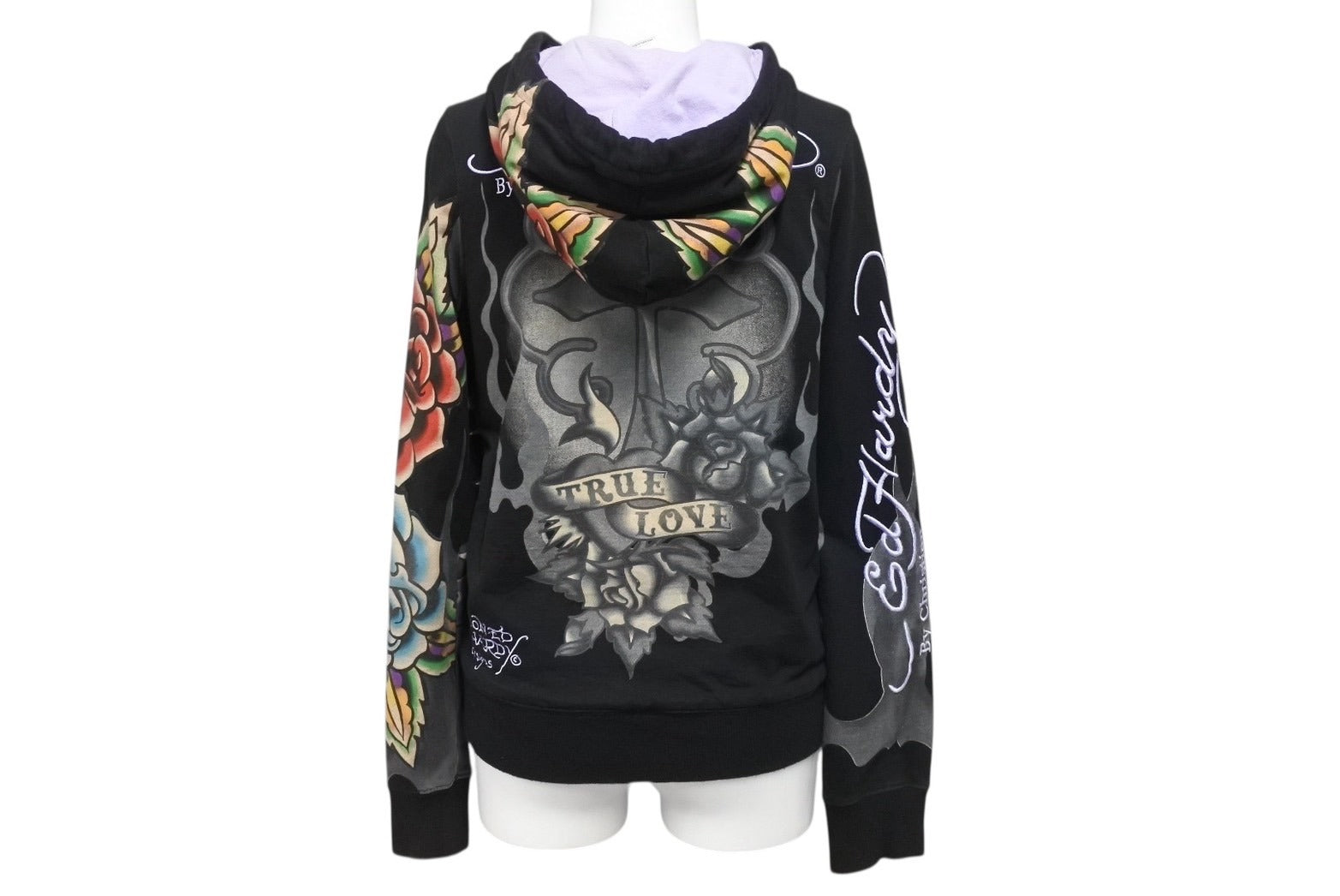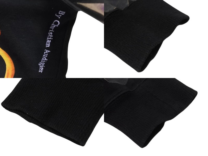 EdHardy エドハーディー ジップアップ フーディ― サイズxs コットン 刺繍 ブラック マルチカラー 美品 中古 4b002003