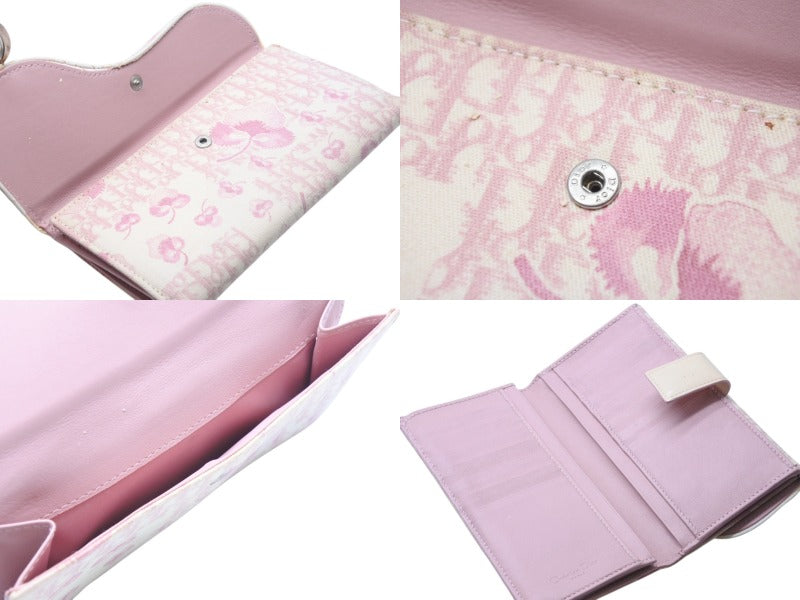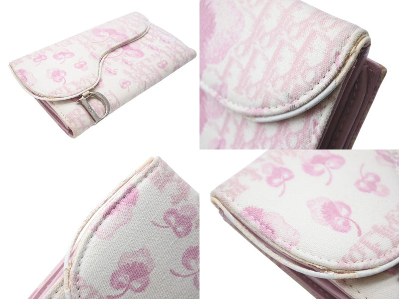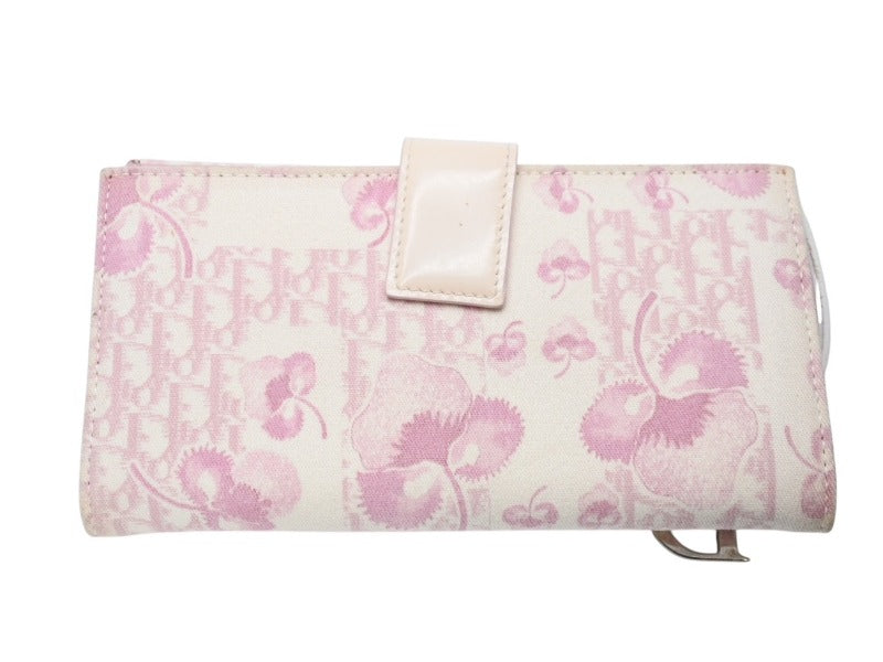CHRISTIAN DIOR クリスチャンディオール 長財布 トロッター サドル 花柄 フローリア レザー キャンバス ピンク シルバー金具 良品 中古 4b002432