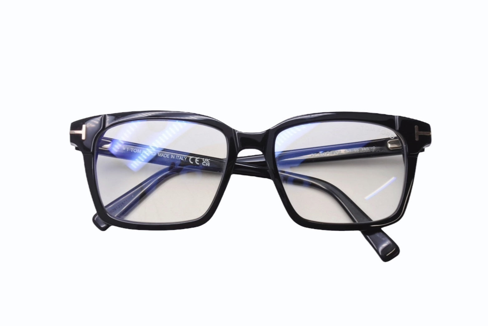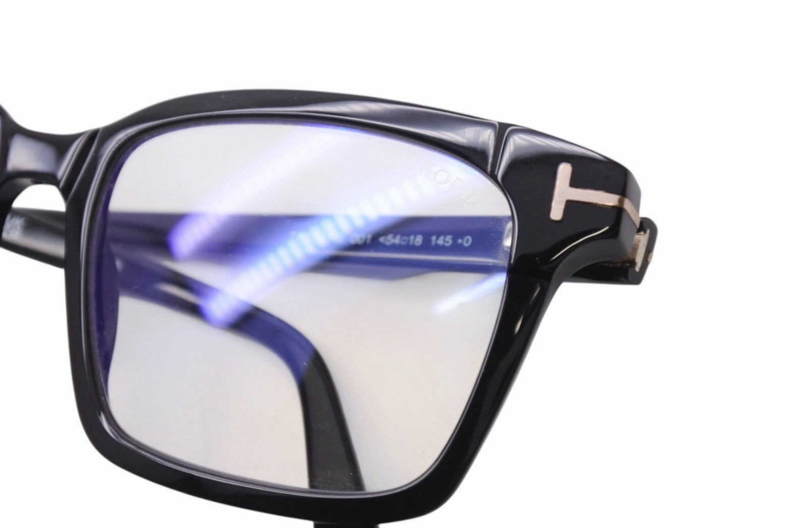 左右の耳かけフレーム(テンプル)に「TOM FORD」お馴染みの「T」マーク、左右のモダン(テンプルの先)外側には「TOM FORD」刻印の入ったロゴプレートあり。耳かけフレーム(テンプル)は、弾力のあるバネ蝶番タイプ。