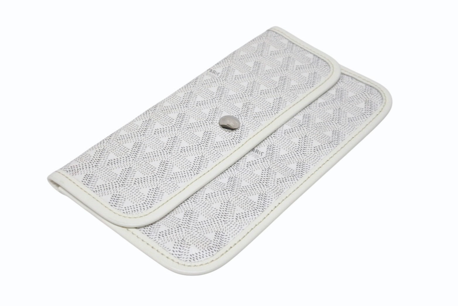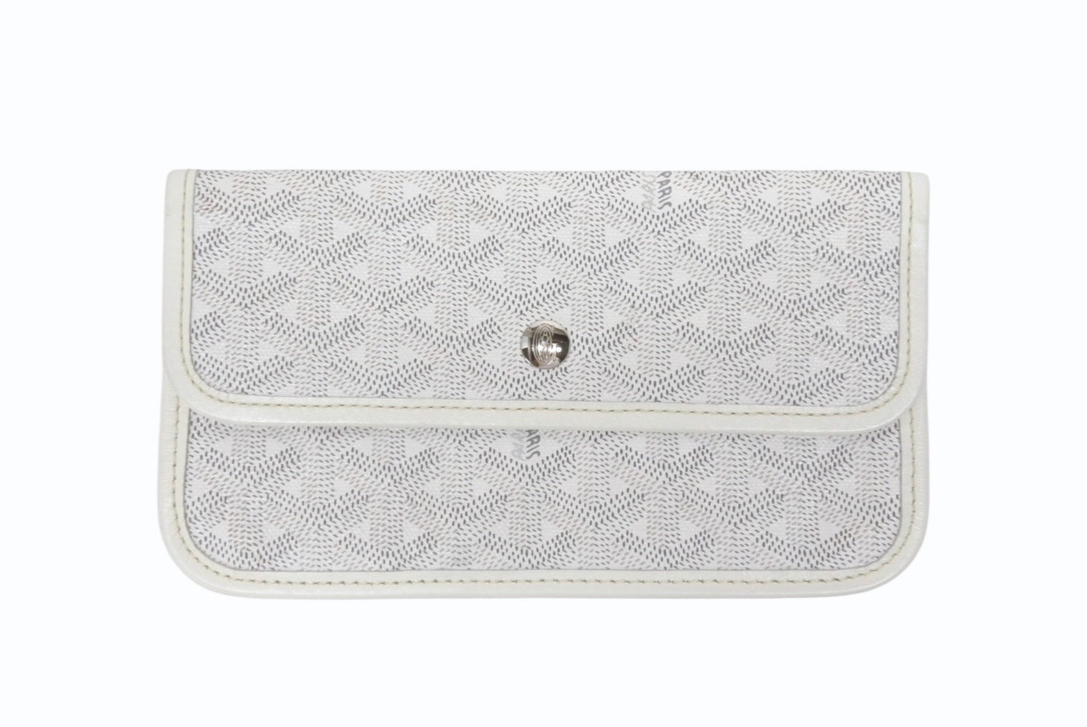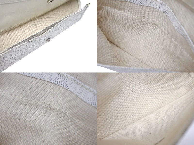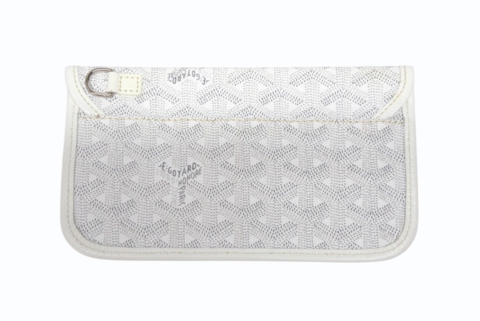 GOYARD ゴヤール ポーチ ポシェット 小物入れ PVC レザー ホワイト グレー マーカージュアート サンルイ シルバー金具 美品 中古 4b005765