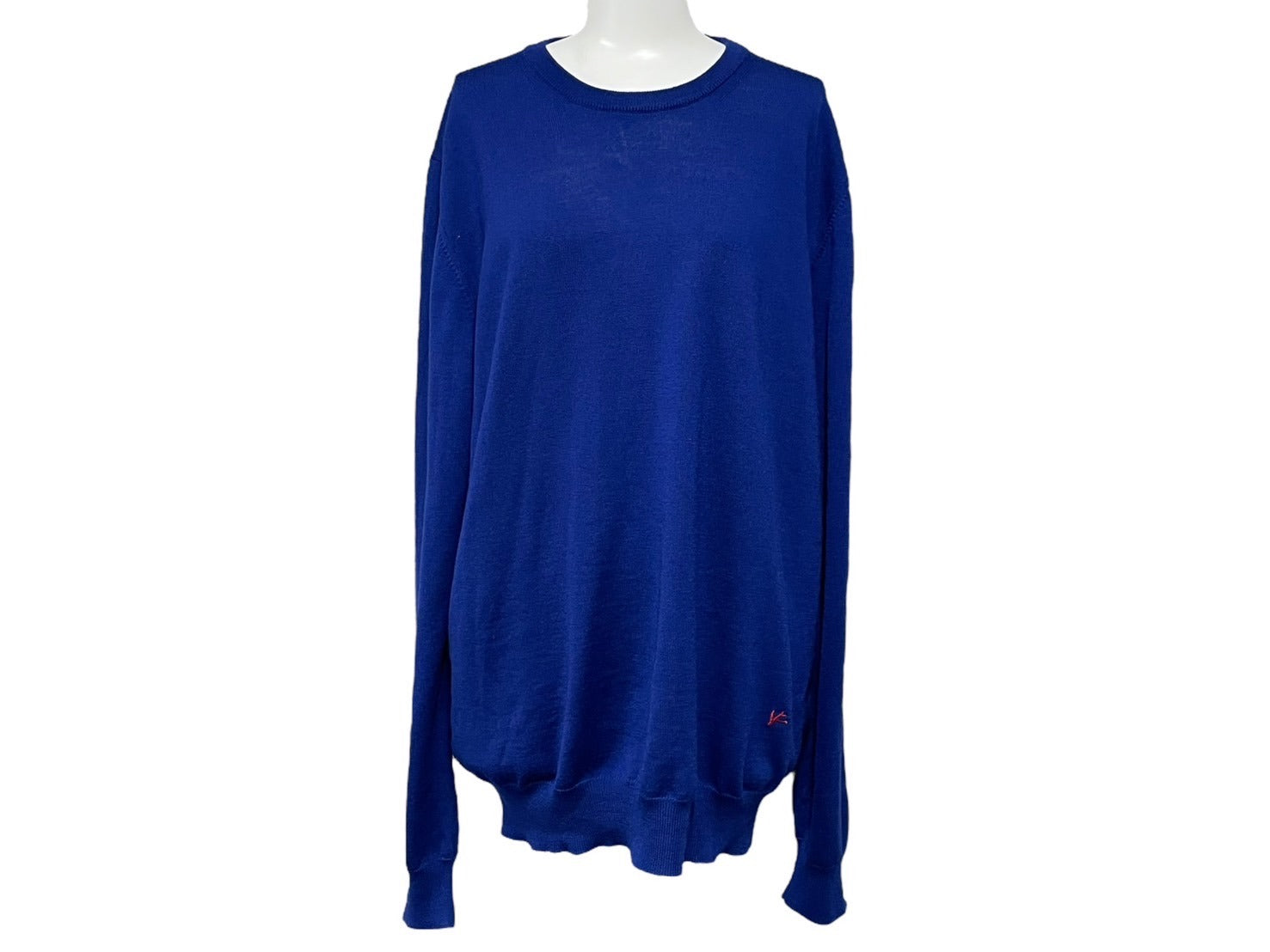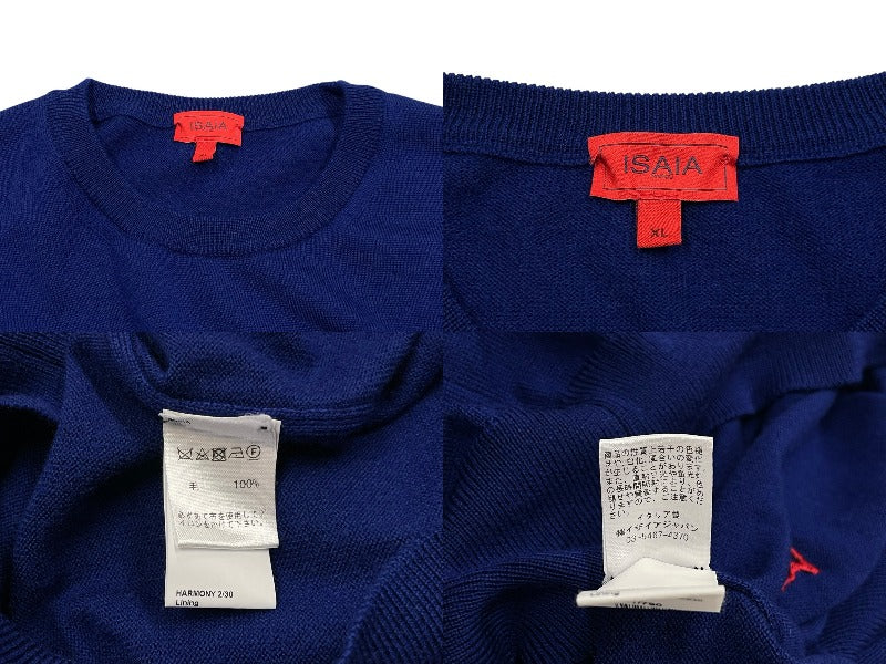 美品 ISAIA イザイア ウール ニット ブルー 青 刺繍 長袖 トップス サイズXL 中古 4c068113
