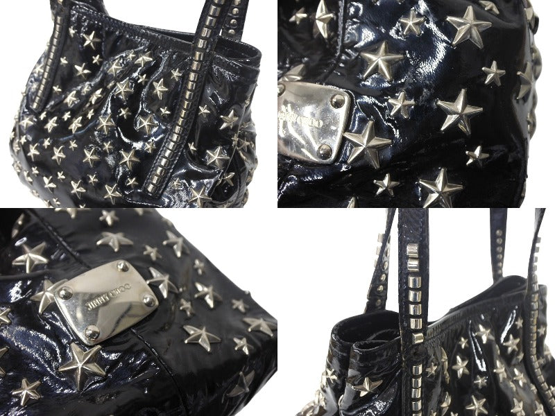 JIMMY CHOO ジミーチュウ トートバッグ ハンドバッグ エナメルレザー スター スタッズ ブラック 中古 4c068866