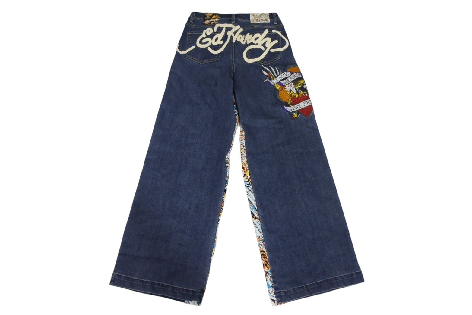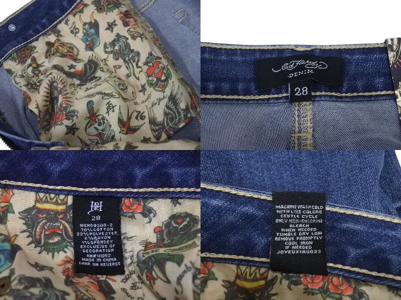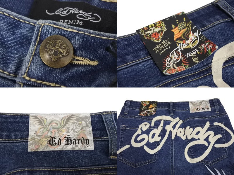 新品未使用 ED HARDY エドハーディ リメイク フレアデニム スタッズ 刺繍 WEHD8400-2 コットン ブルー サイズ28 中古 4c069856