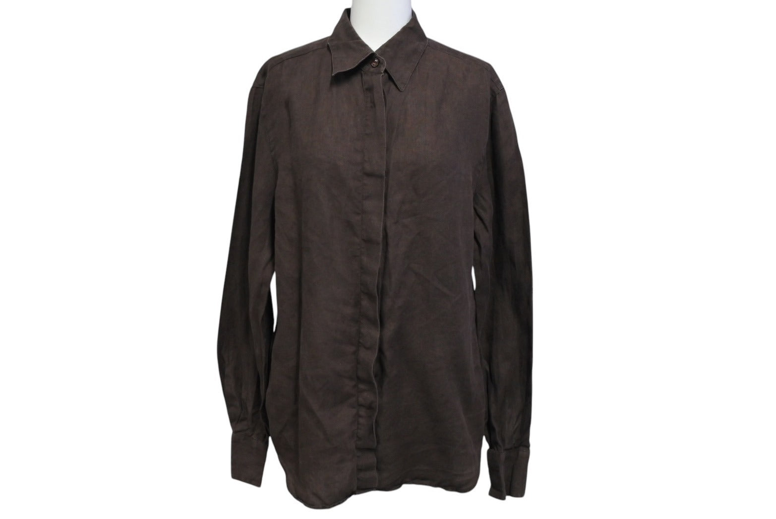 MAX MARA マックスマーラ 長袖シャツ トップス 73136 イタリア製 麻・リネン ブラウン サイズ38 美品 中古 4c070124