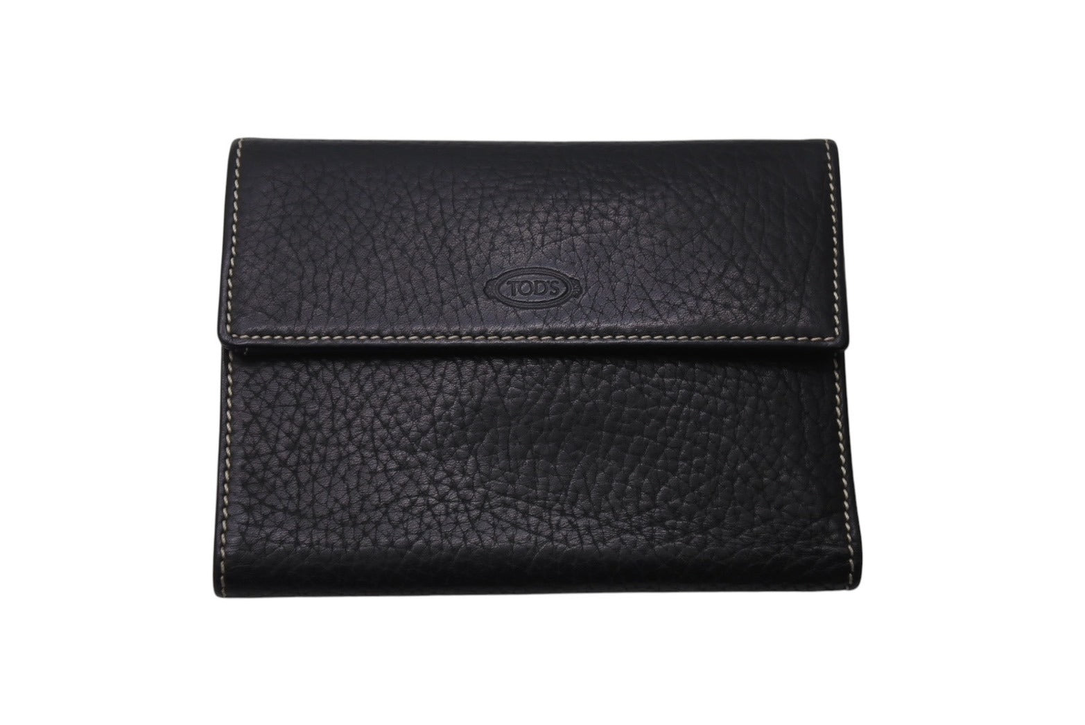 TOD'S トッズ 財布 三つ折り 折り財布 イタリア製 本革レザー ブラック 刺繍 美品 中古 4c070317