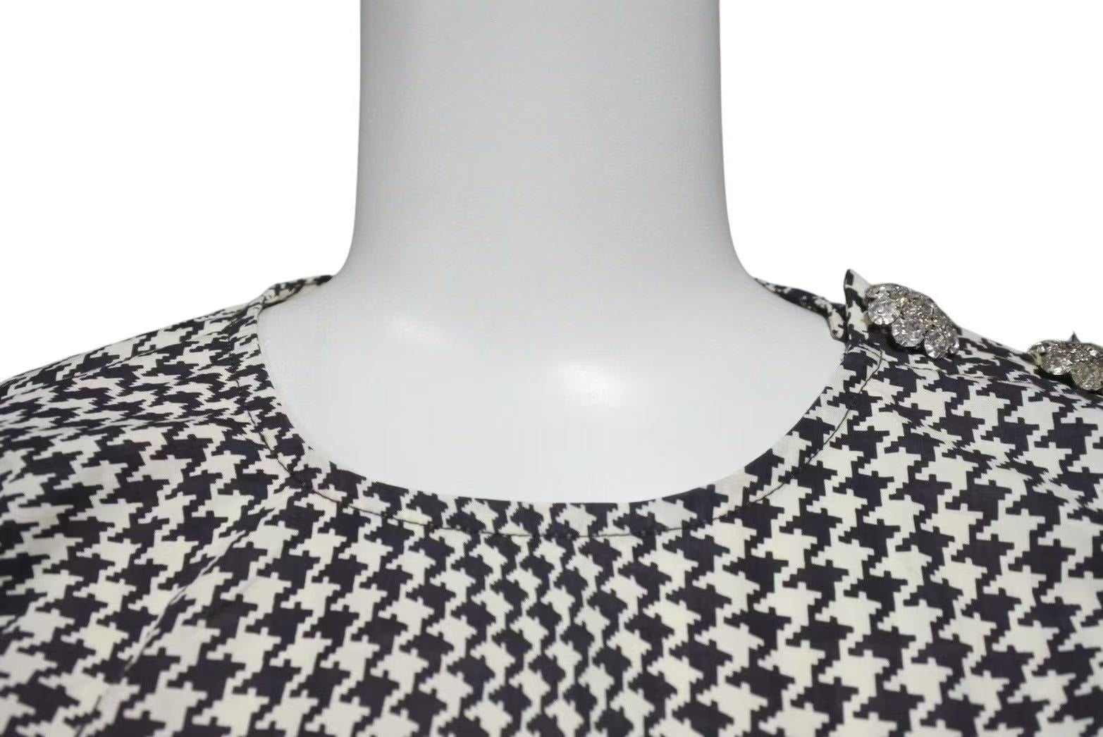 GANNI ガニー Houndstooth pattern blouse 千鳥柄 ブラウス レディース サイズ 34 コットン 100% 美品 中古 4c071712