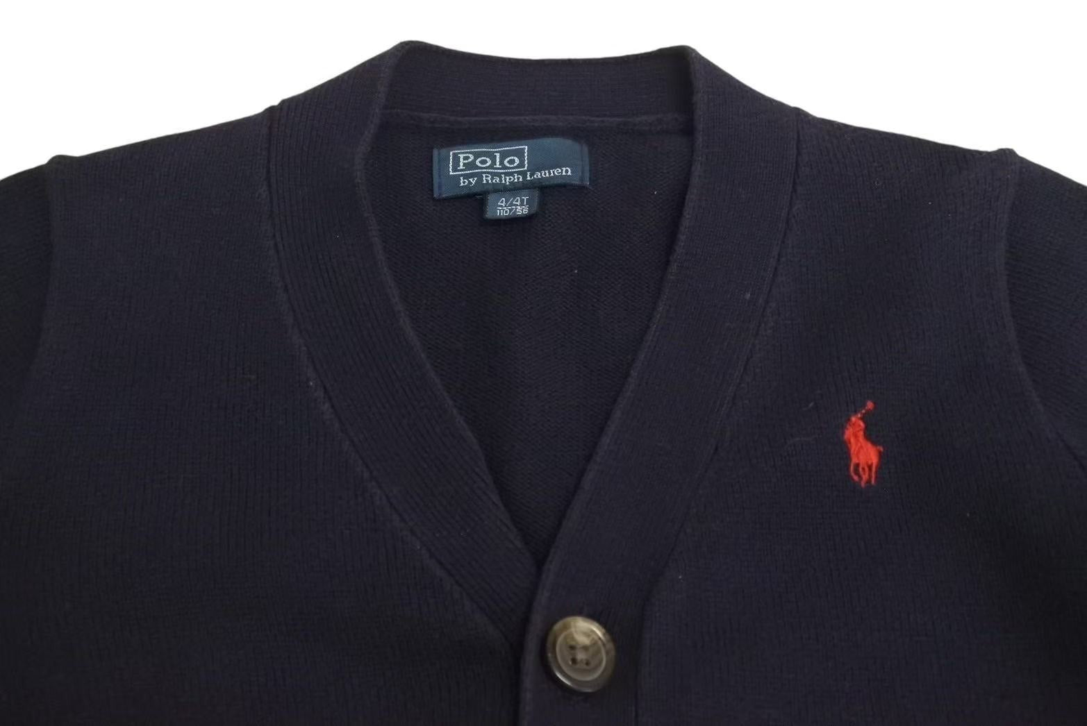 POLO RALPH LAUREN ポロ ラルフローレン カーディガン キッズ コットン ネイビー 4/4T 56/110cm 美品 中古 4c073189