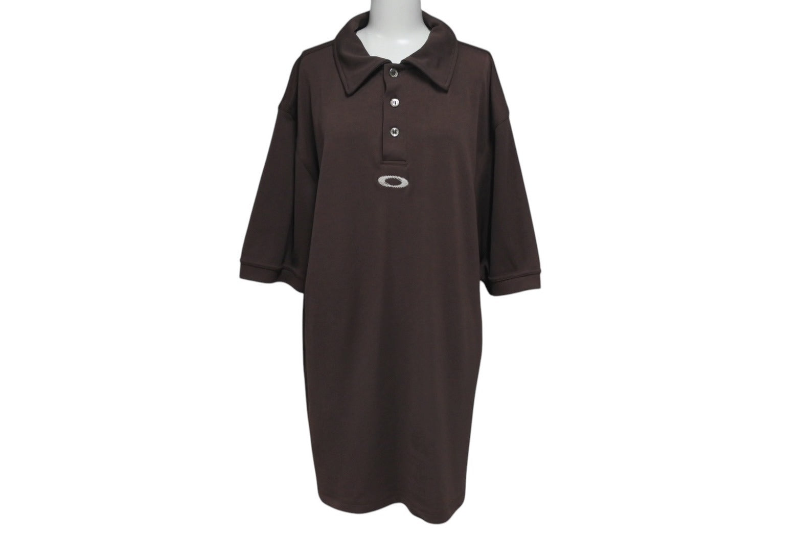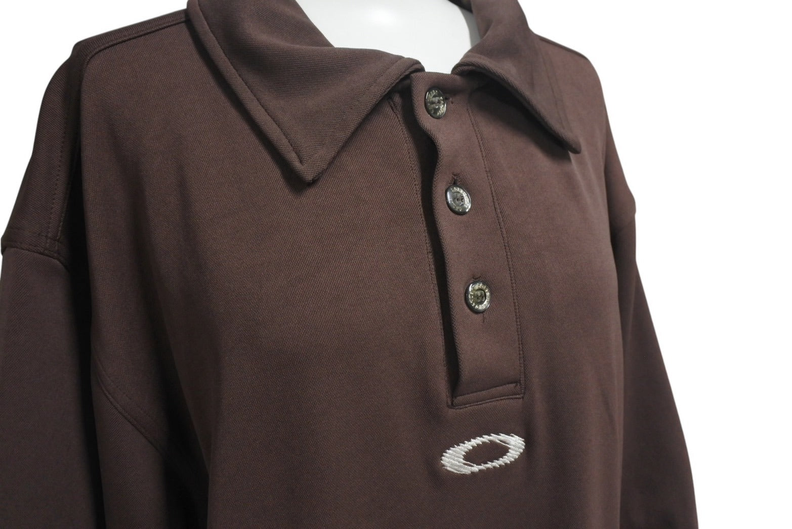 OAKLEY オークリー ロゴ ポロシャツ ヴィンテージ 96548 ナイロン ブラウン ホワイト サイズM 美品 中古 4c075625