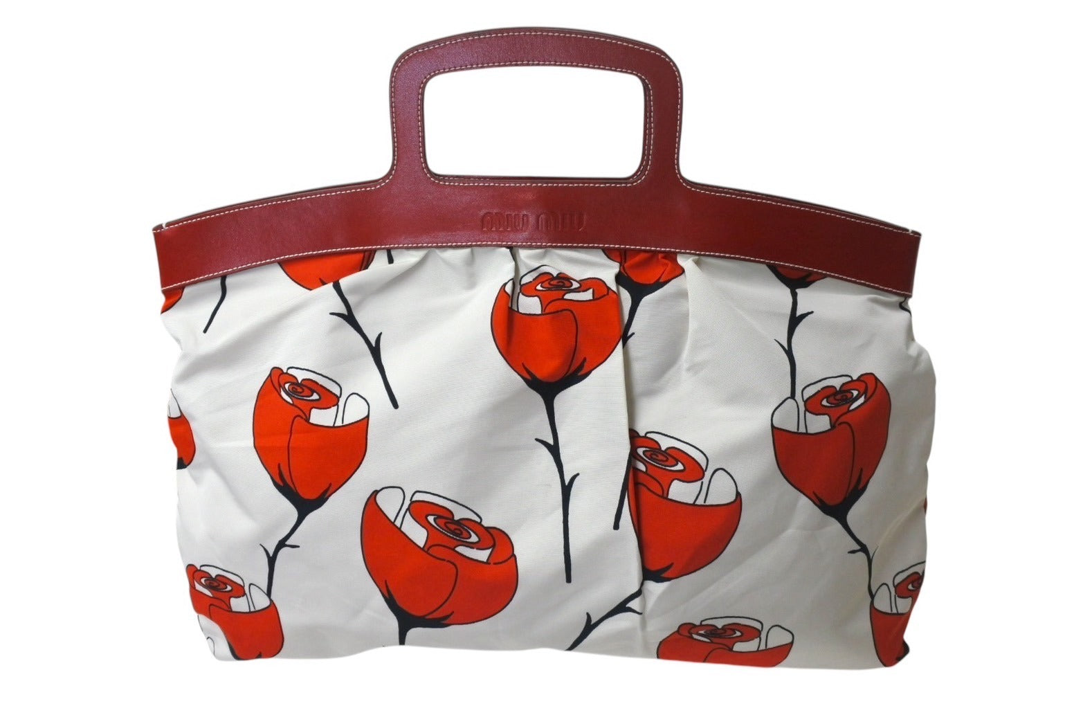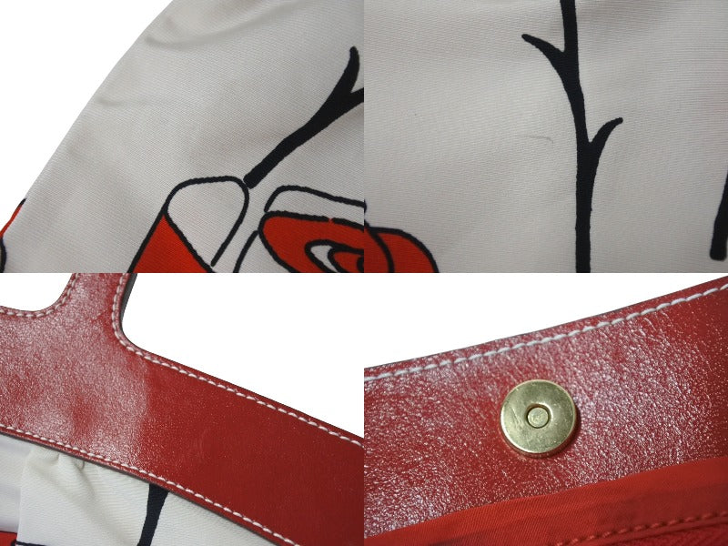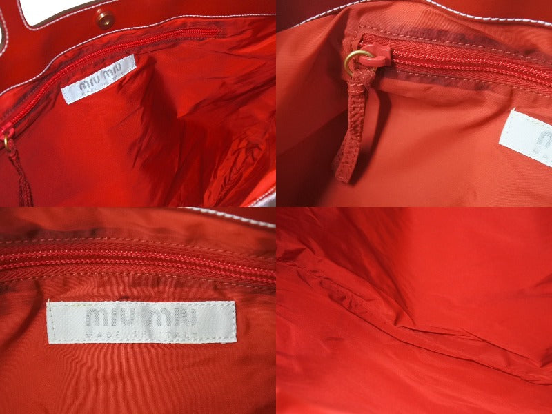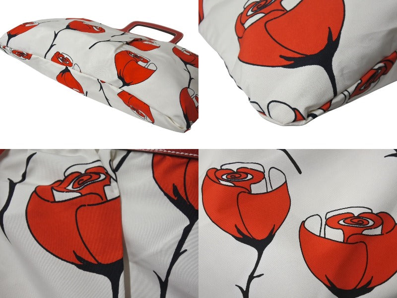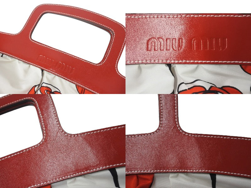 MIUMIU ミュウミュウ ハンドバッグ 花柄 チューリップ ホワイト レッド ナイロン レザー サイズ31 美品 中古 4c076631