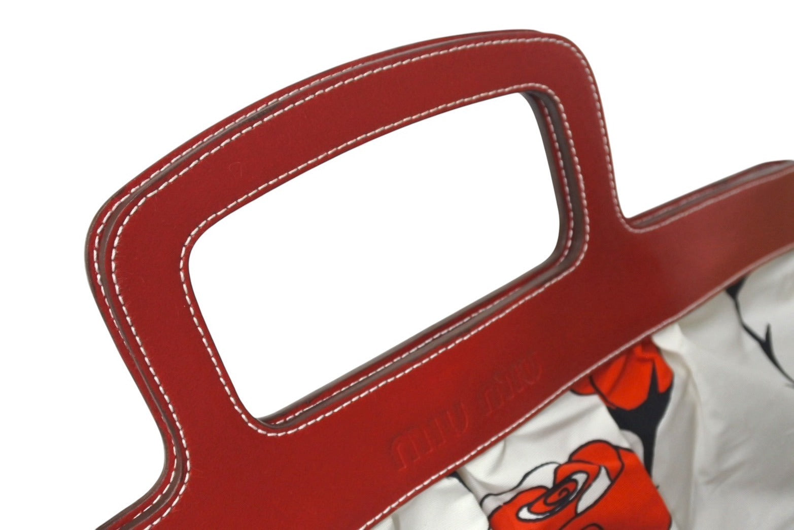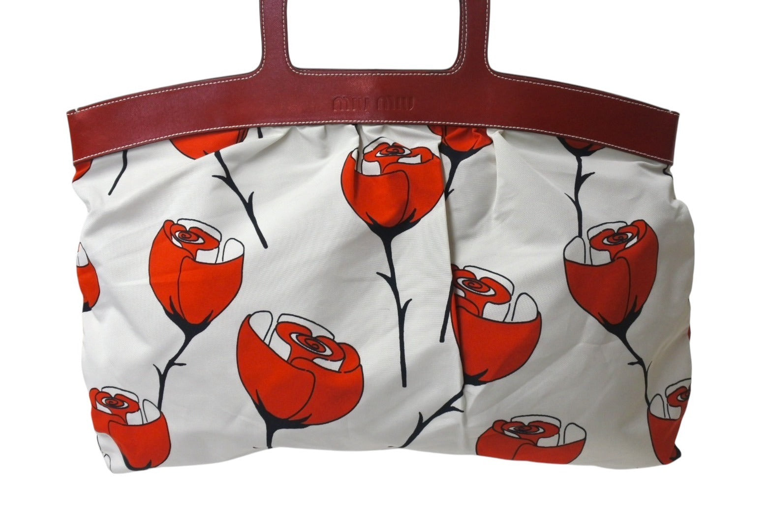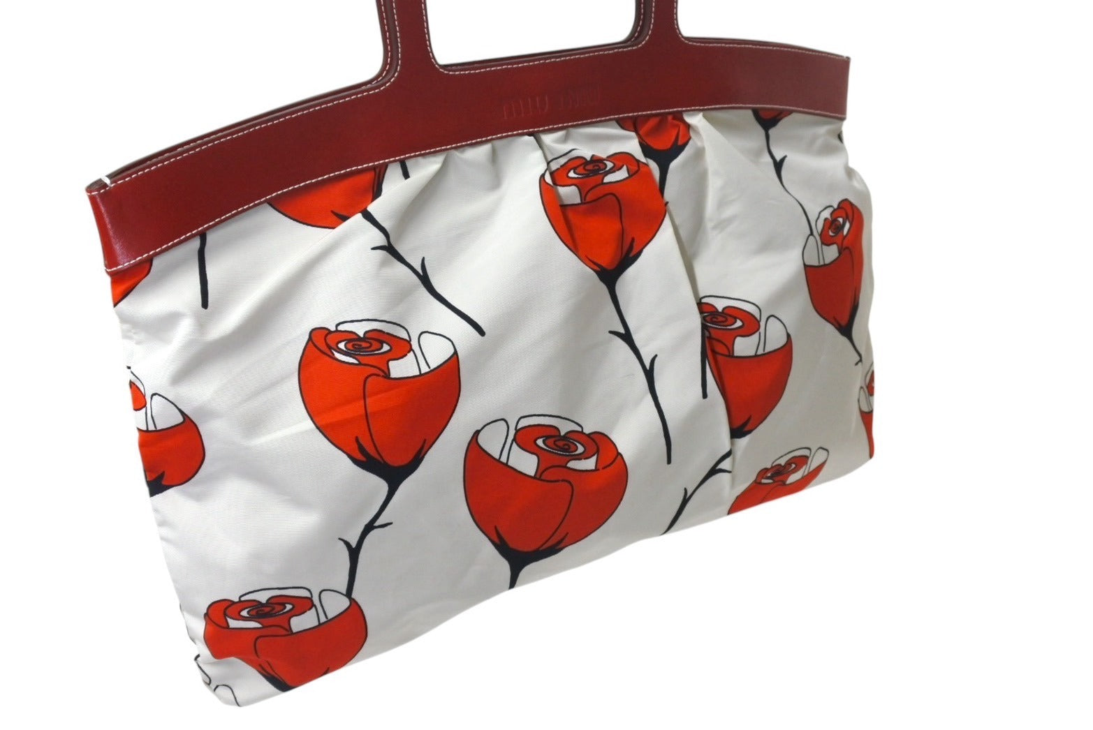 MIUMIU ミュウミュウ ハンドバッグ 花柄 チューリップ ホワイト レッド ナイロン レザー サイズ31 美品 中古 4c076631