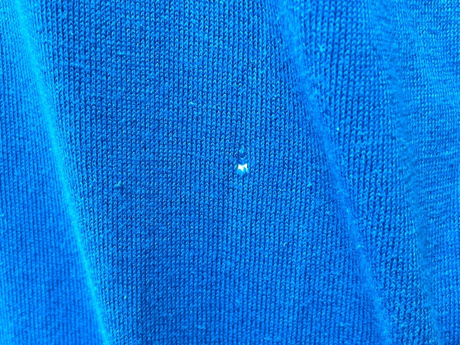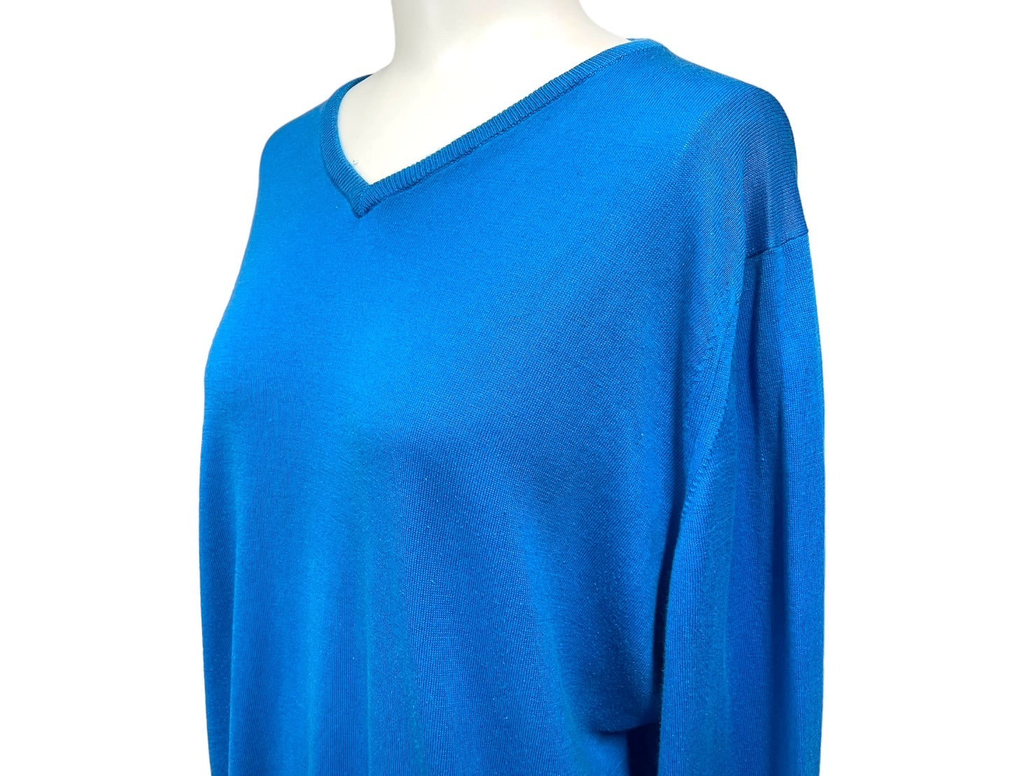Vネックや表下部に汚れがあります。表タグに糸解れがあり、両袖リブに色褪せがあります。左袖に穴あきがあり、全体的に僅かな毛玉があります。まだまだ中古品として使用していただけます。