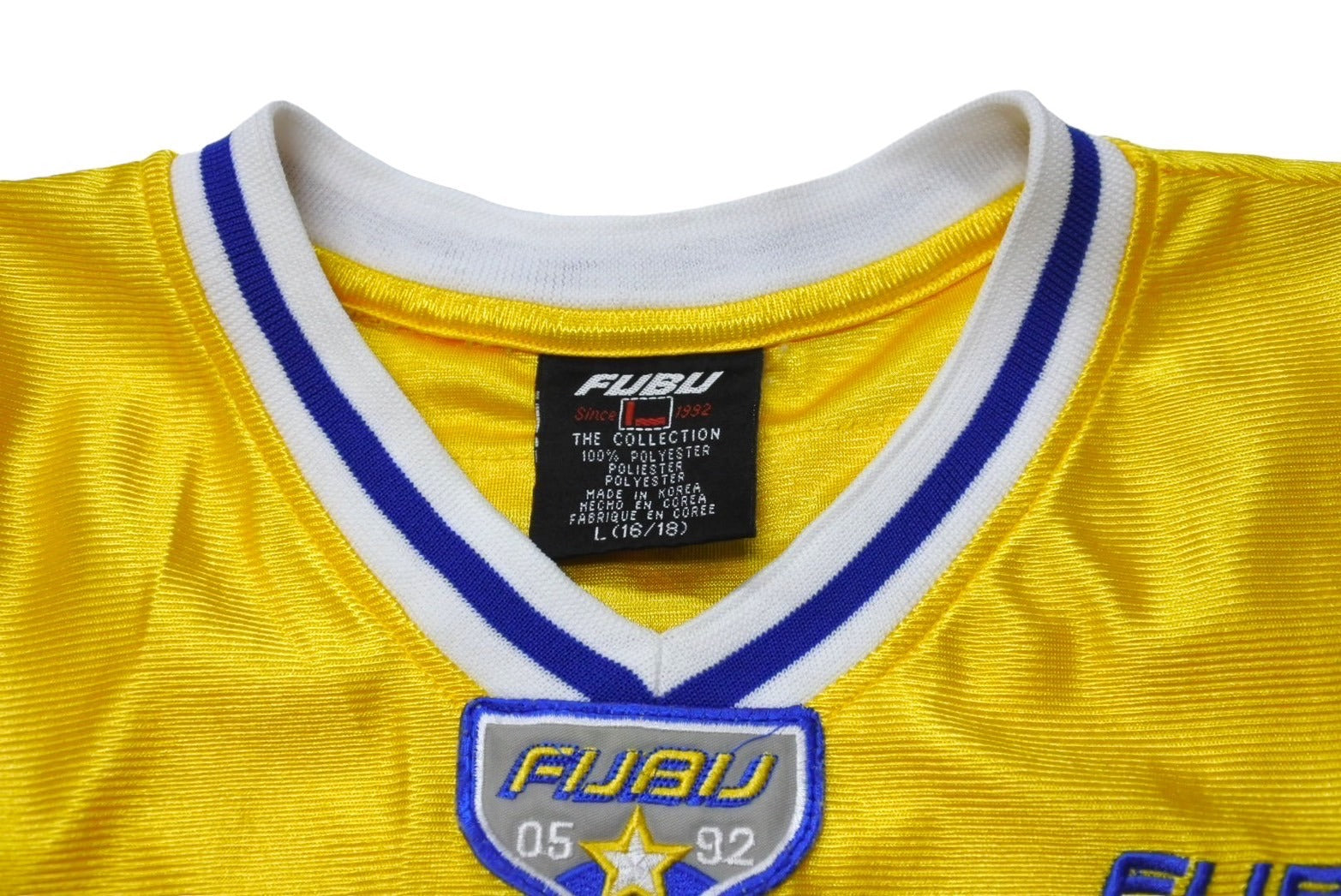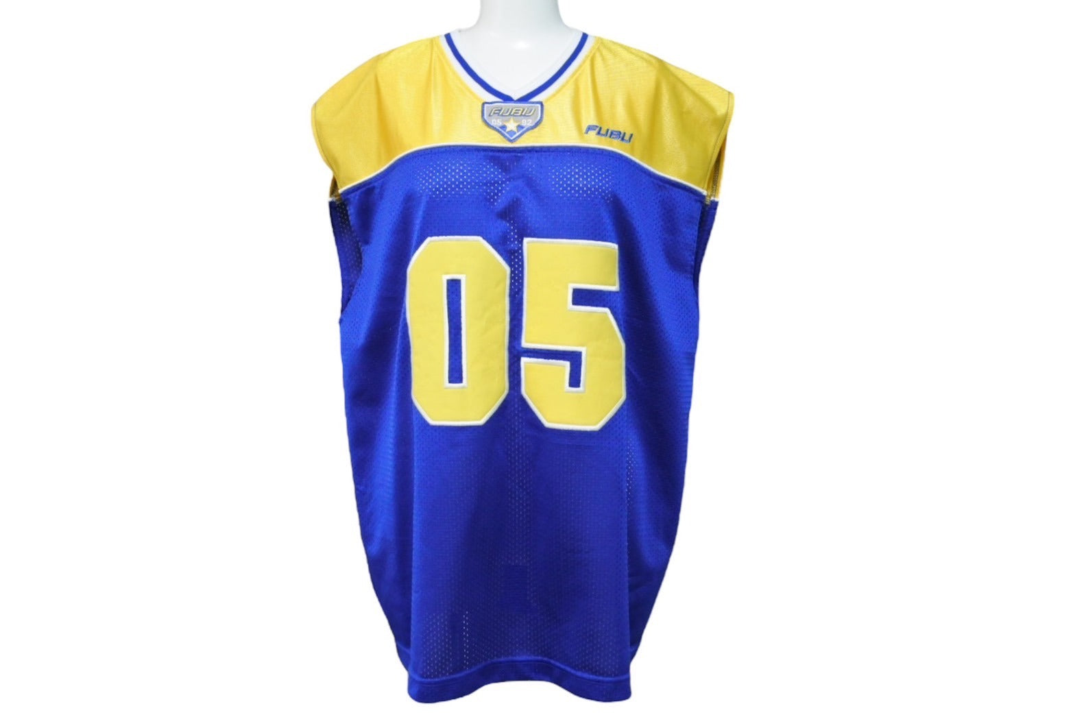 極美品 FUBU THE COLLECTION フブ タンクトップ ゲームシャツ サイズL ポリエステル ブルー イエロー ホワイト メッシュ 中古 67126
