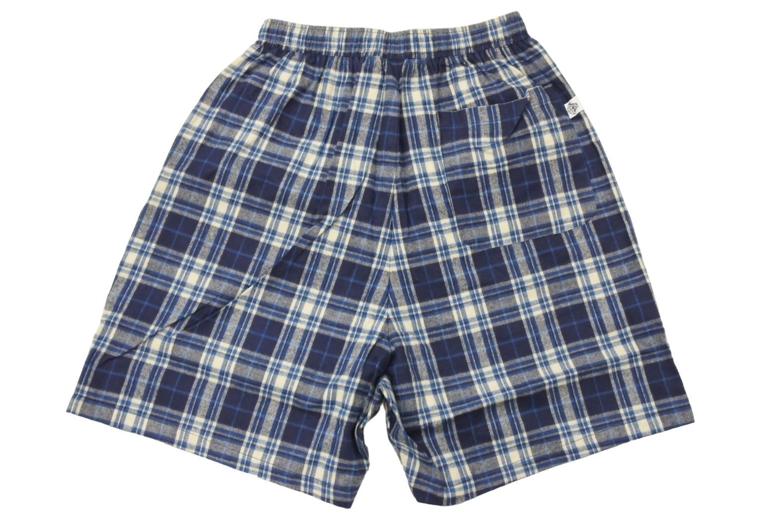 柔らかい2色のフランネルチェックの生地を使用したウエストがイージー仕様のリラックスした雰囲気のSHORTS。