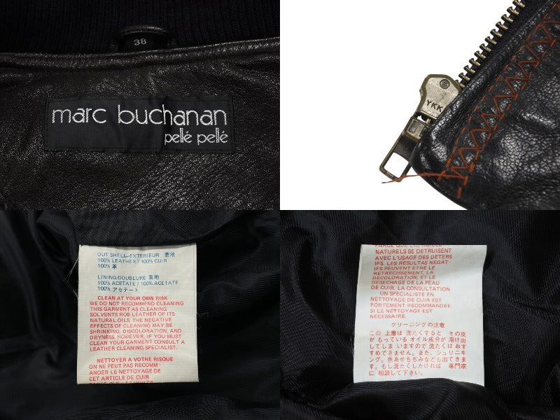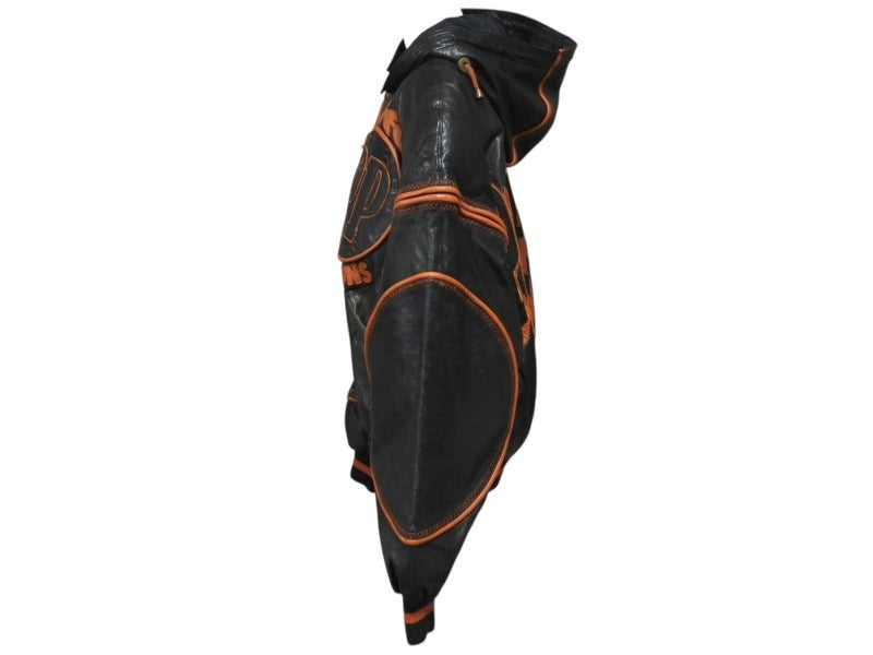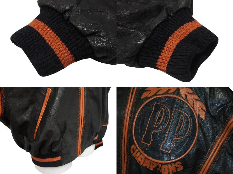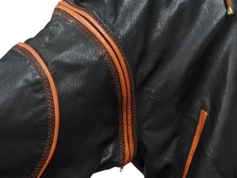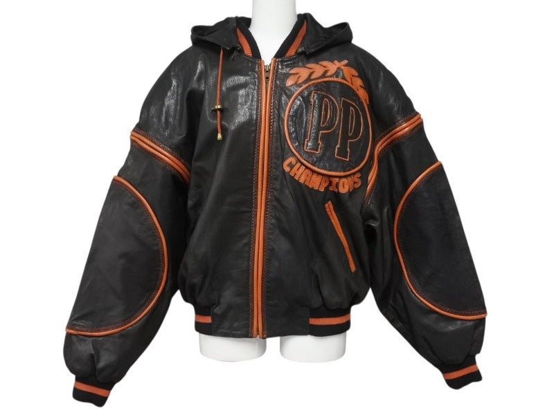 pellepelle ペレペレ フーディ レザージャケット 刺繍 ロゴ サイズ38 ブラック オレンジ 美品 中古 4b006654