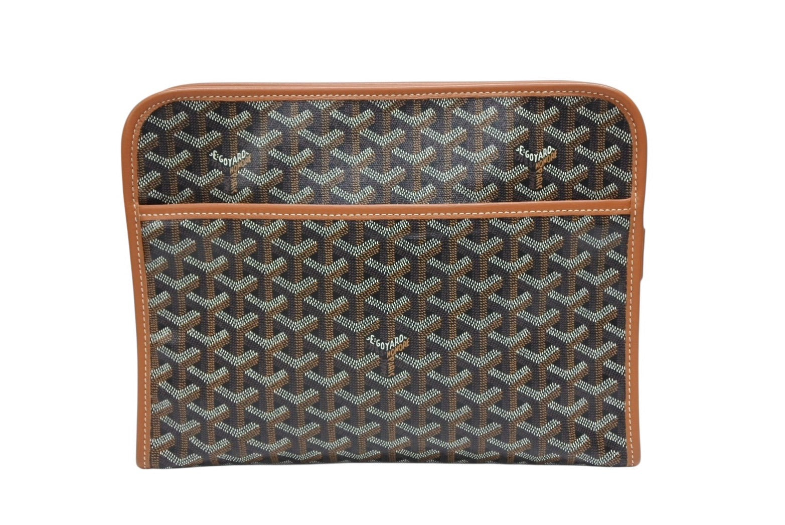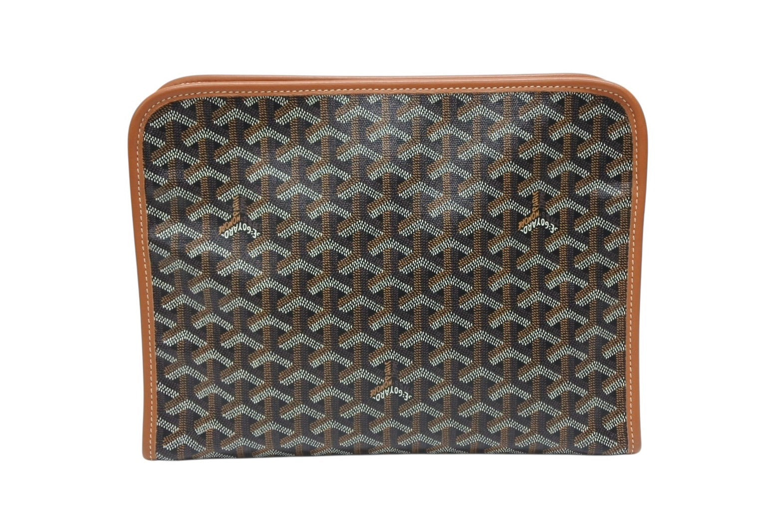 新品未使用 GOYARD ゴヤール クラッチバッグ ジュバンス MM ポーチ ブラウン ゴヤールディンキャンバス シルバー金具 中古 4b008524