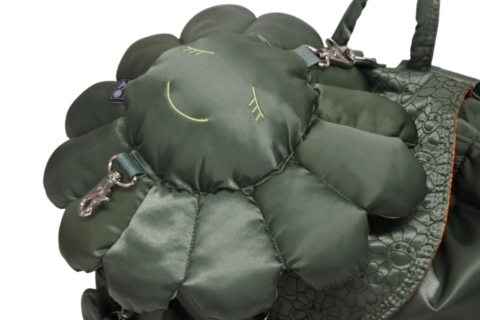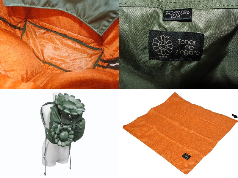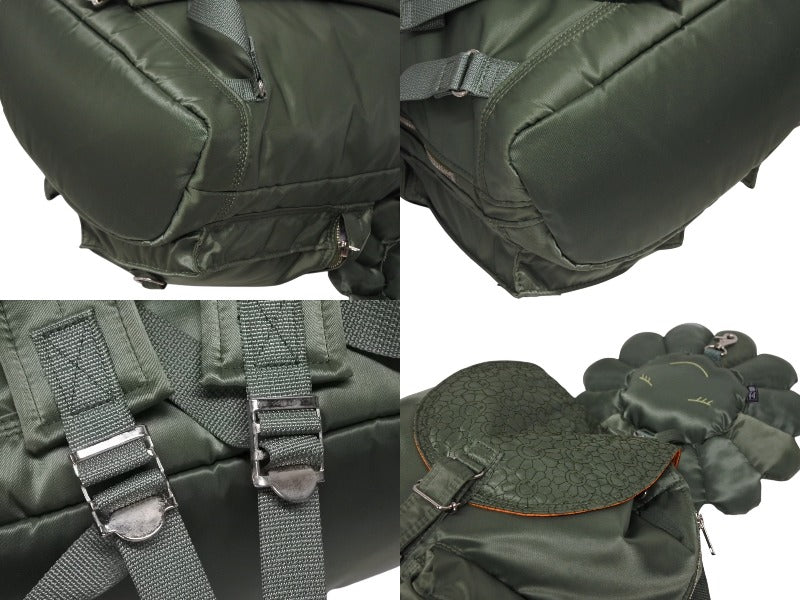極美品 PORTER x 村上隆 ポーター RUCKSACK リュック バックパック 381-08544 お花 ナイロンツイル セージグリーン 中古 4b010255