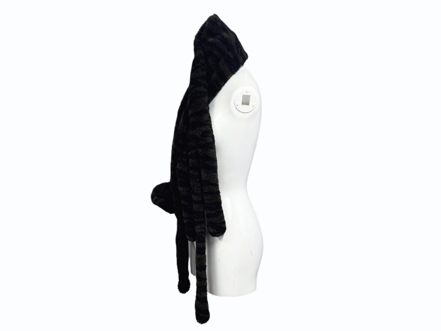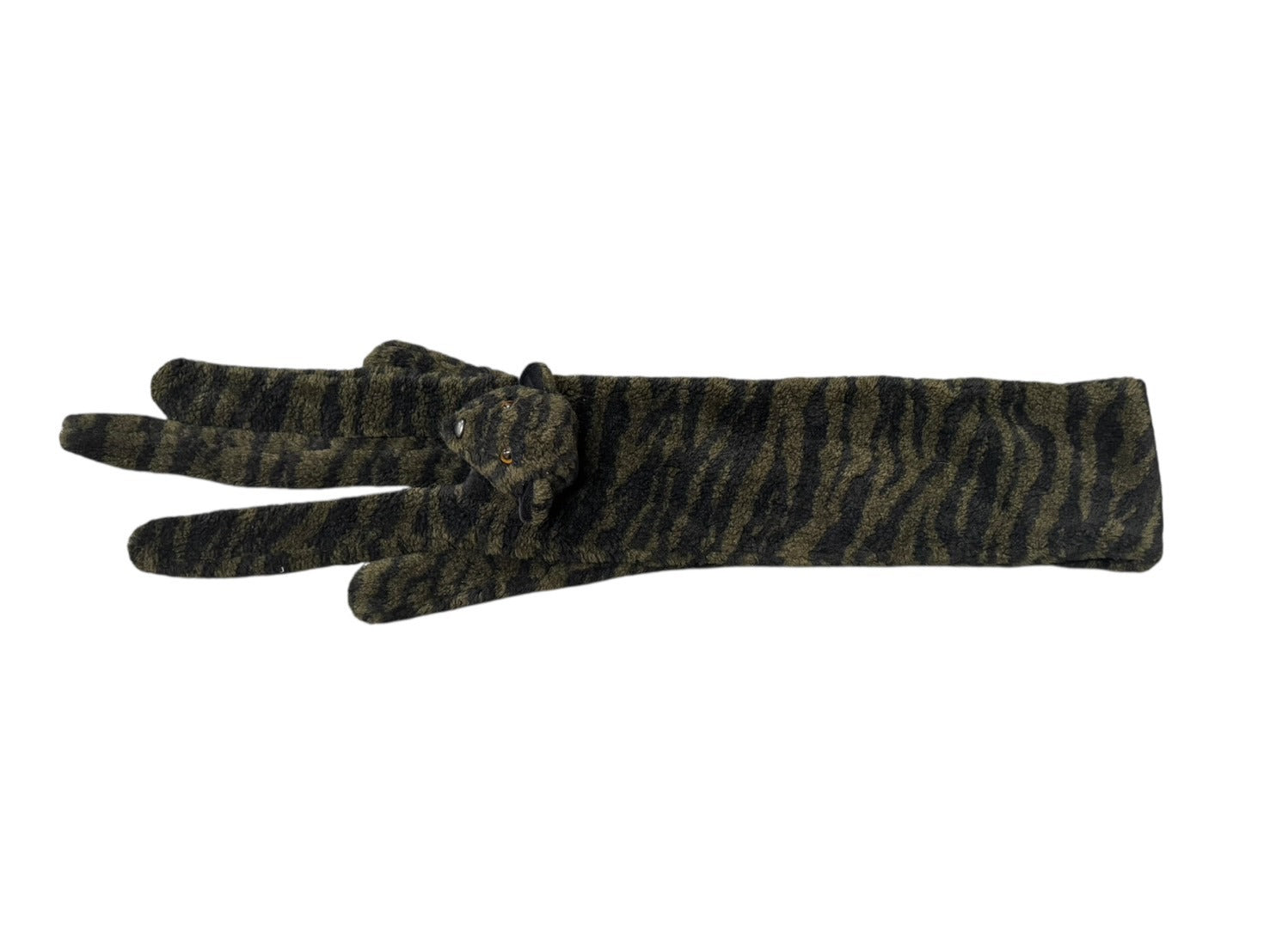 ぬいぐるみのような虎の顔、手足、しっぽ付きで、ファッションとアートを融合させたユニークな一点です。気になった方是非。