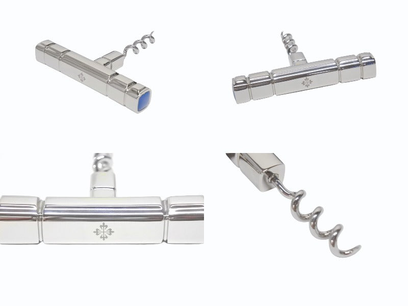 新品未使用 PATEK PHILIPPE パテックフィリップ コルク抜き ワインオープナー ステンレスルチース シルバー ブルー 中古 4b004058