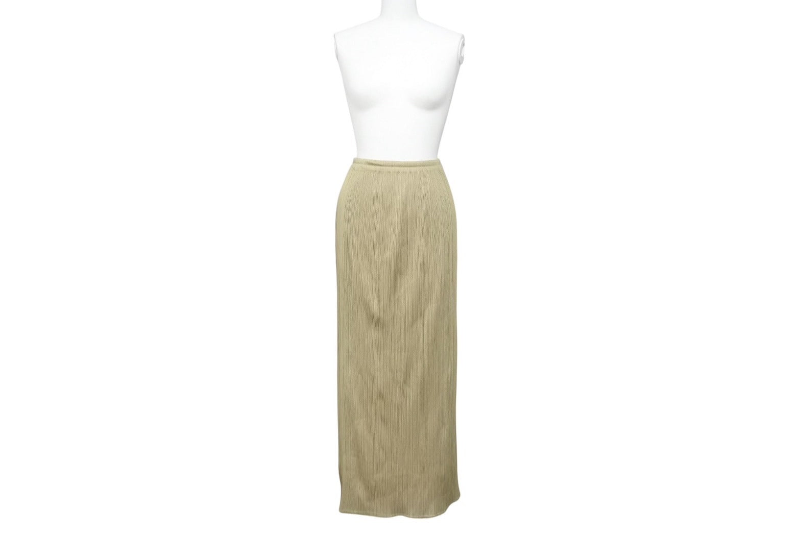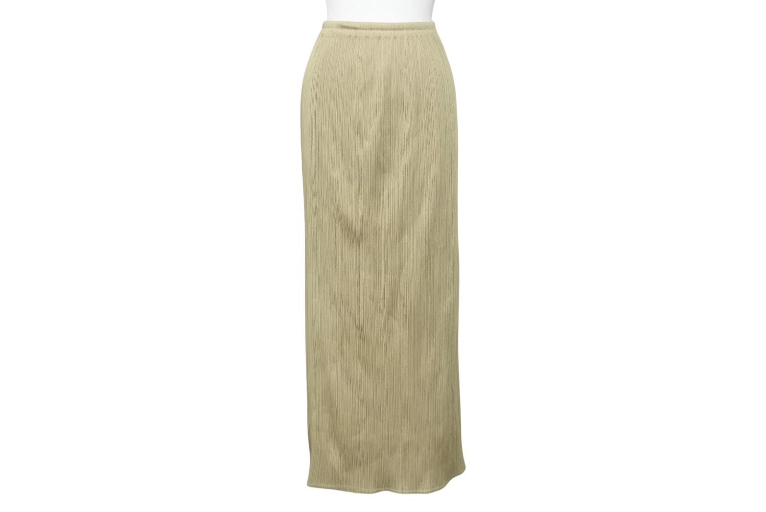 極美品 ISSEY MIYAKE イッセイミヤケ PLEATS PLEASE プリーツプリーズ ロングスカート PP04-JG113 サイズ3 カーキ系 中古 4b004350