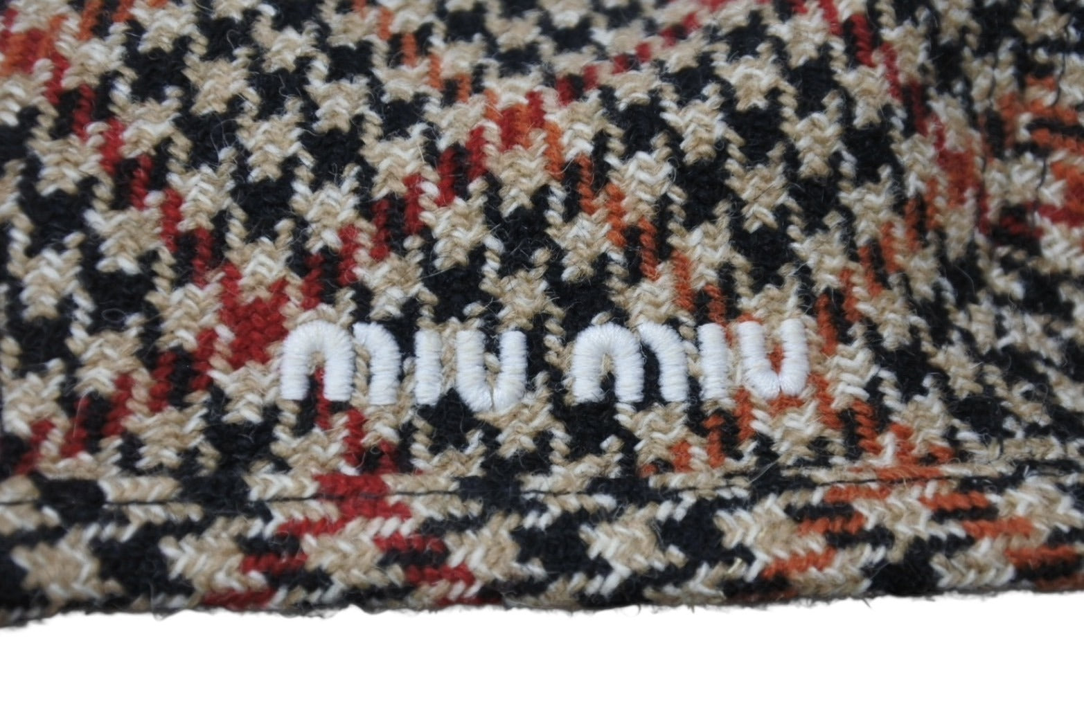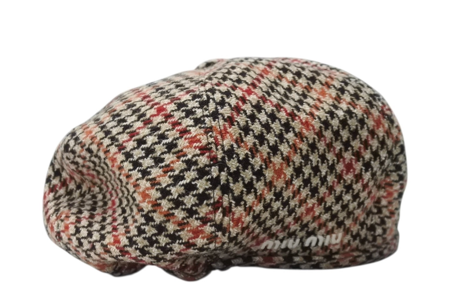 MIUMIU ミュウミュウ ベレー帽 千鳥柄 5HC075 マルチカラー ウール ポリアミド サイズS 美品 中古 4b004763