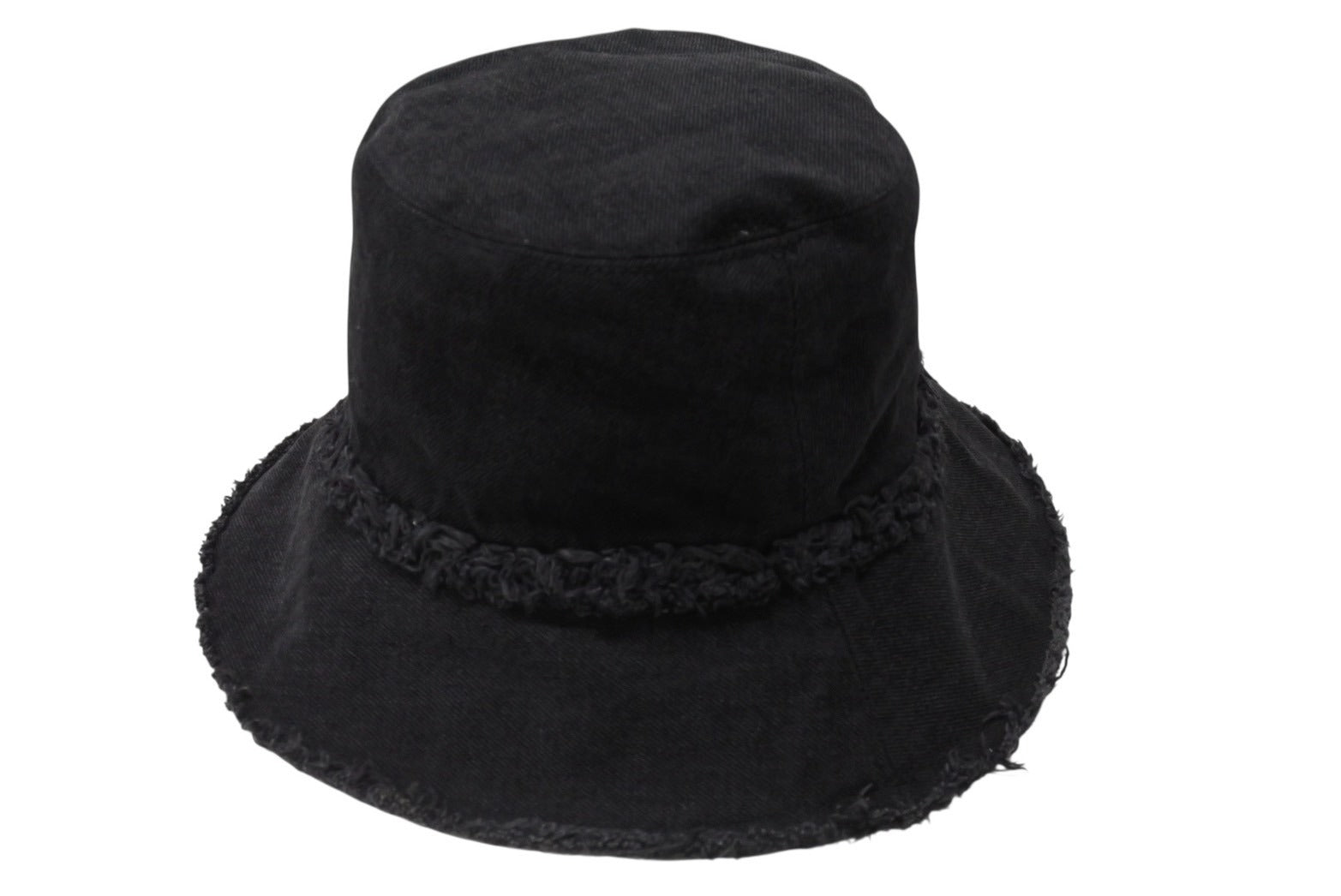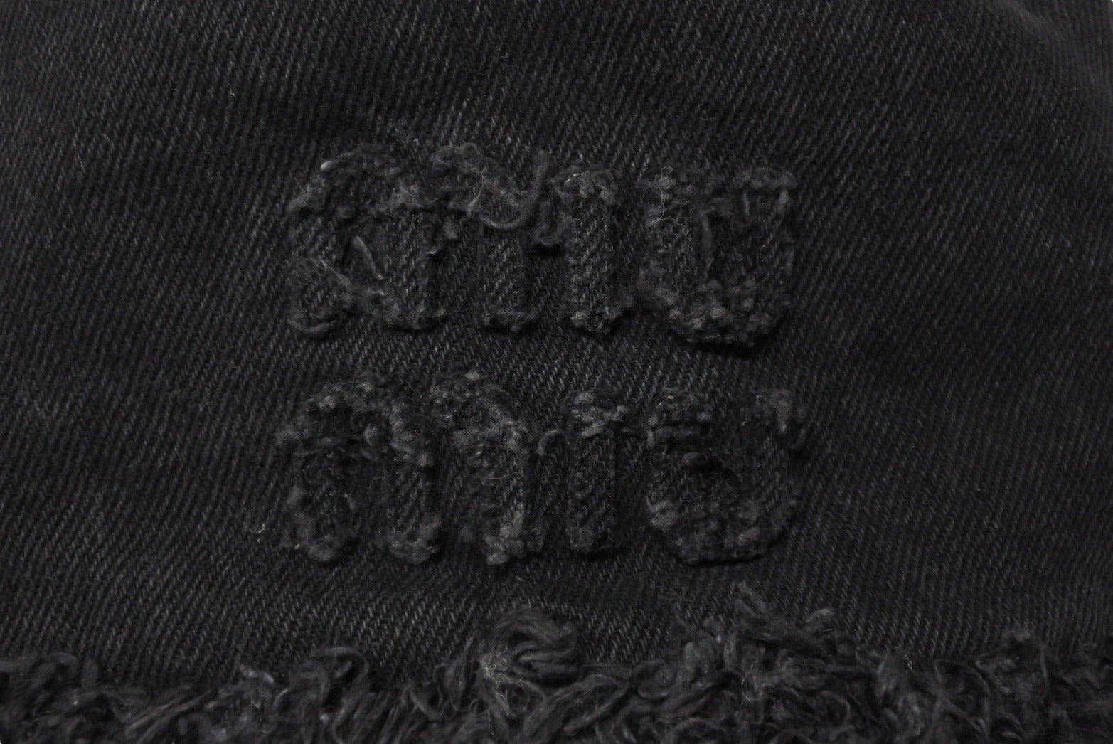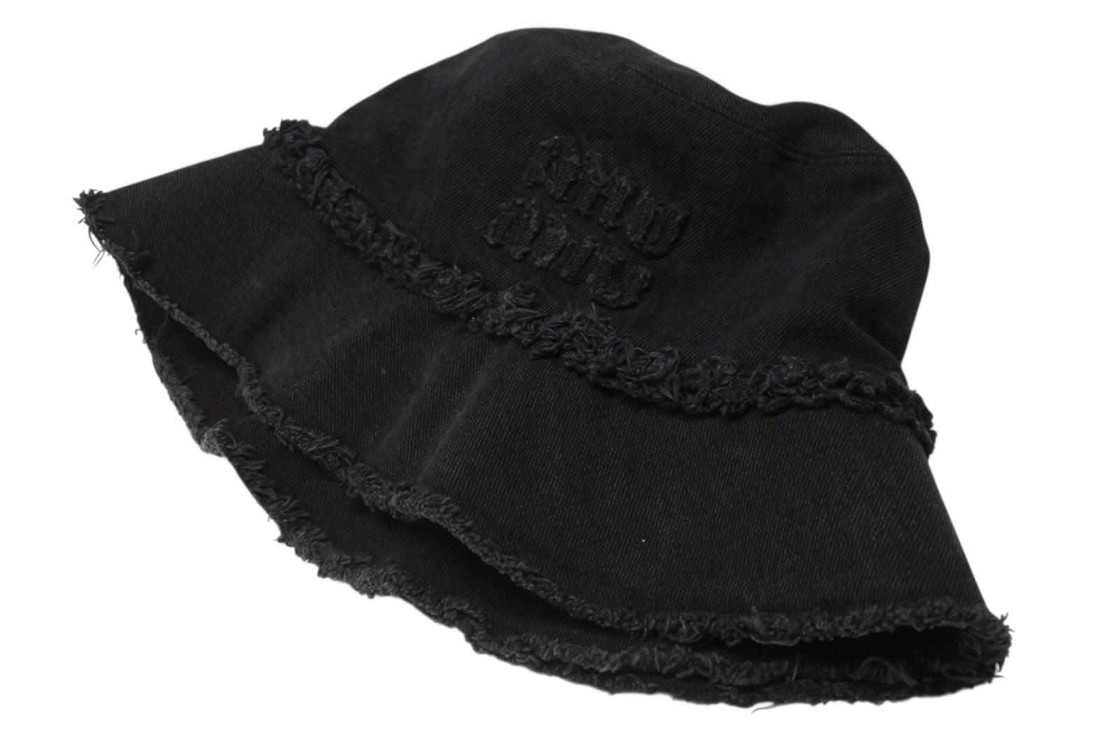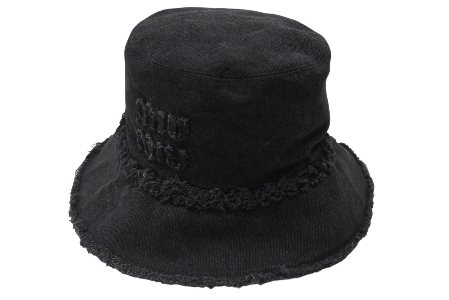 MIUMIU ミュウミュウ バケットハット デニム フリンジ ロゴパッチ 5HC1962CL4 コットン ブラック サイズS 美品 中古 4b004764