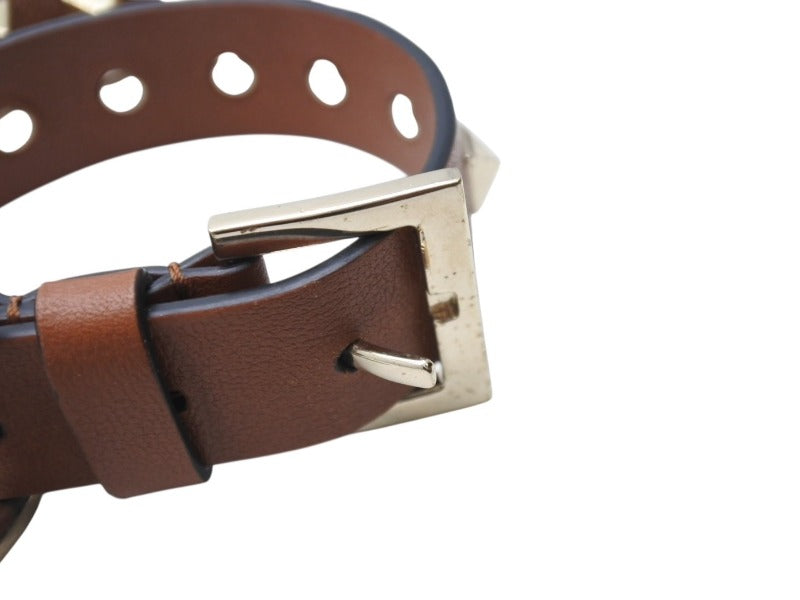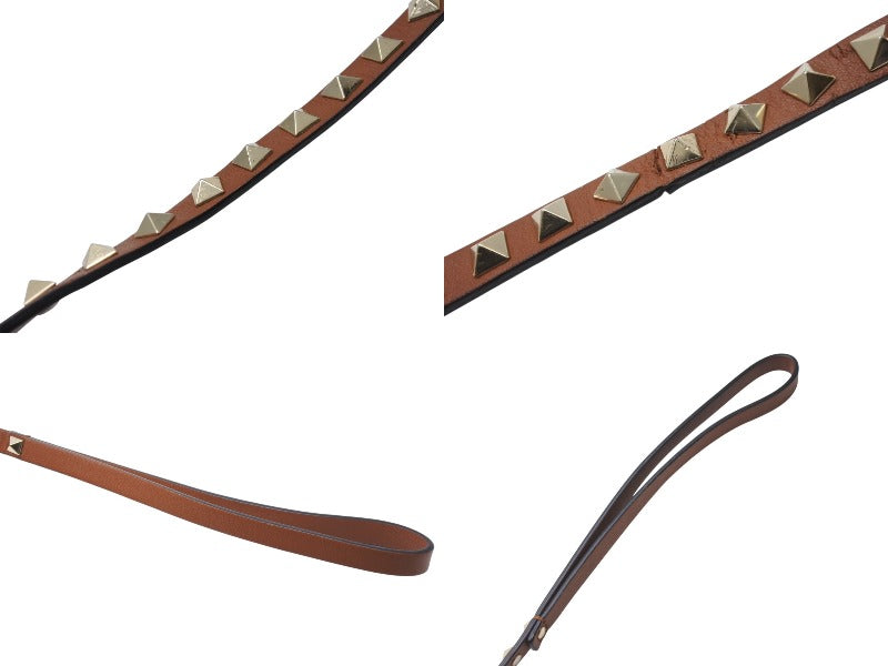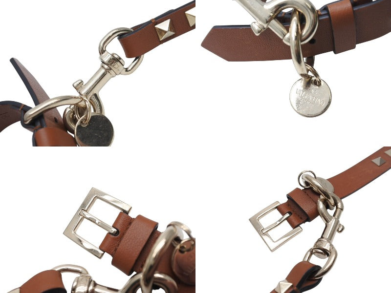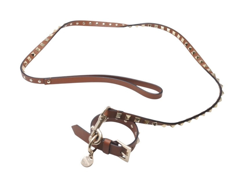 VALENTINO GARAVANI ヴァレンティノ ガラヴァーニ スタッズ 犬用リード&首輪セット レザー ブラウン 首輪サイズS 美品 中古 4b004776