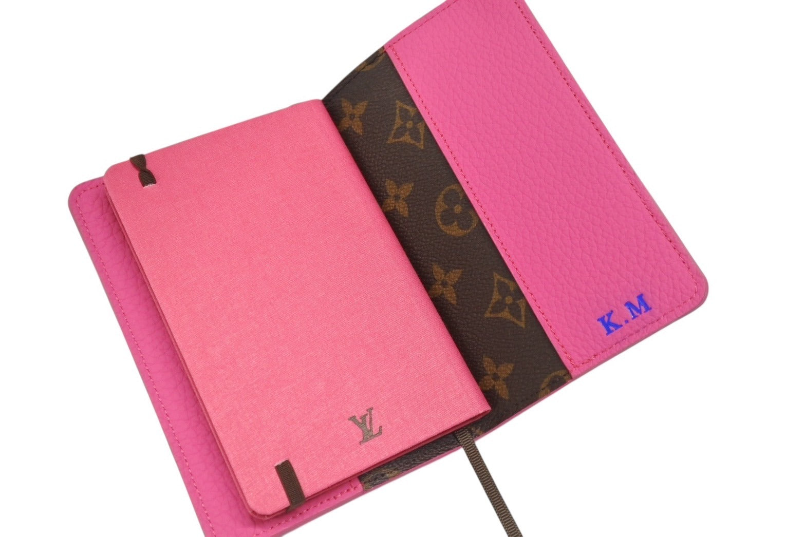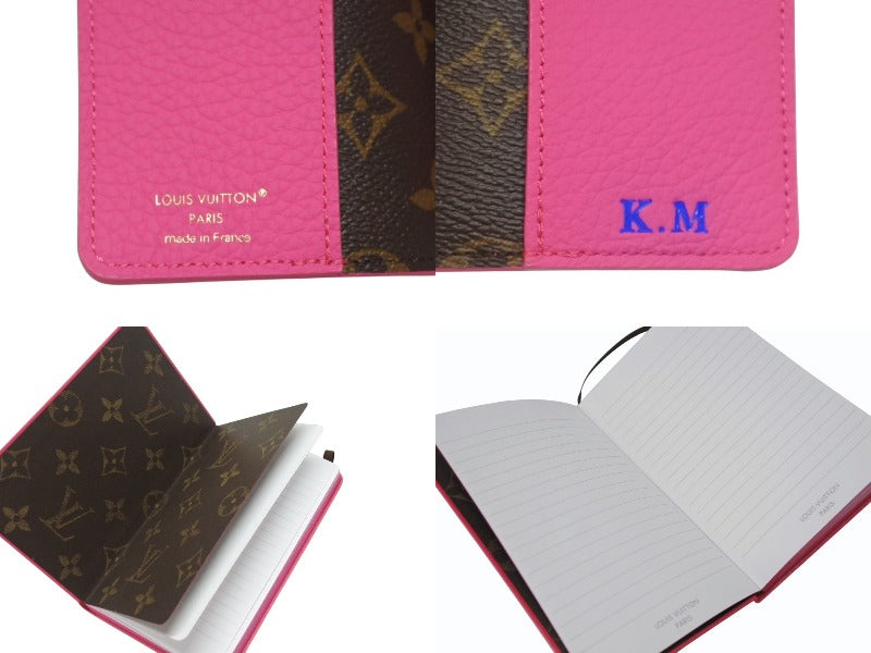新品同様 LOUIS VUITTON ルイヴィトン ノートブックカバーPM ノート GI1212 イニシャル入り トリヨンレザー ピンク ブラウン 中古 4b004896