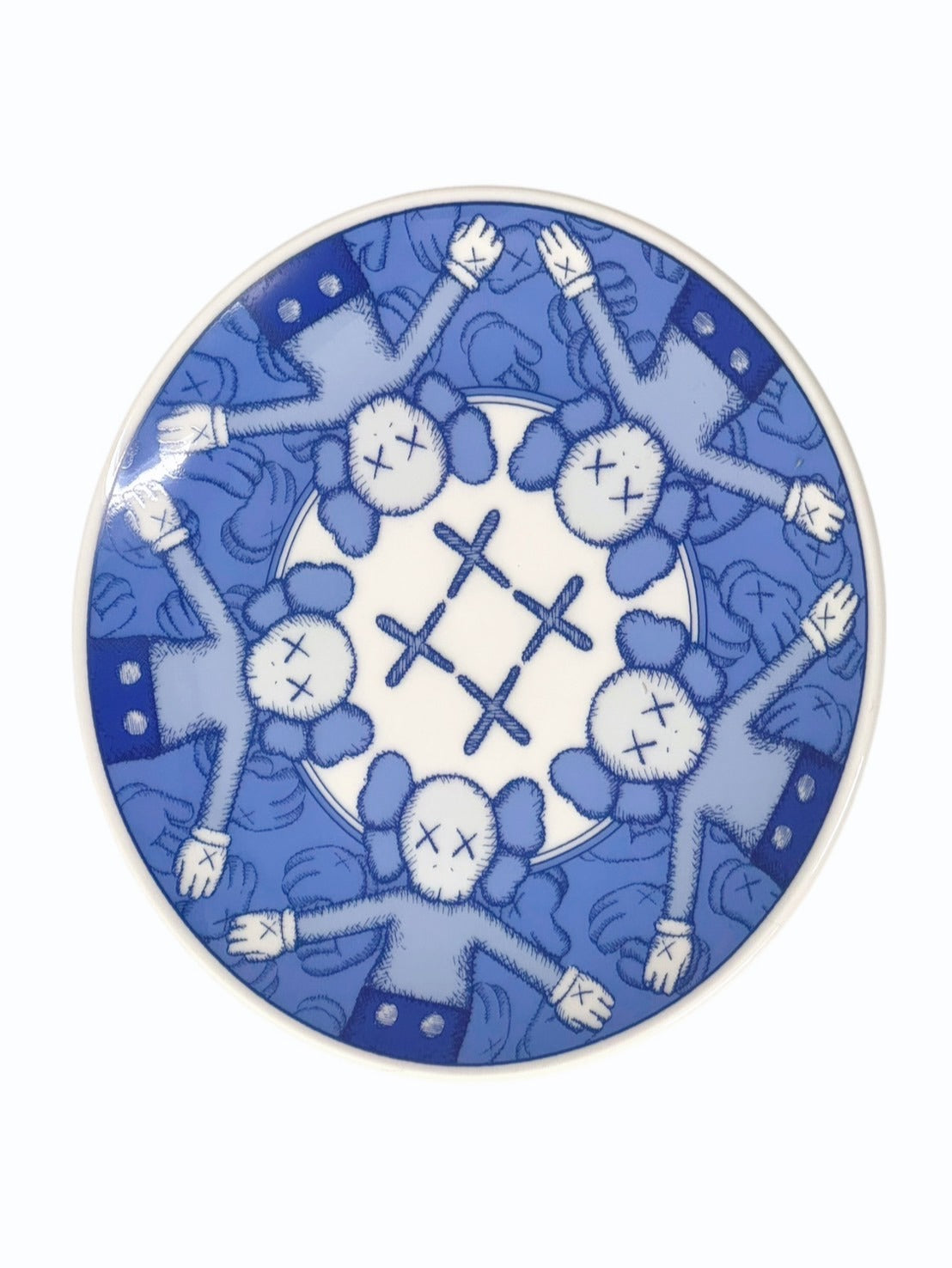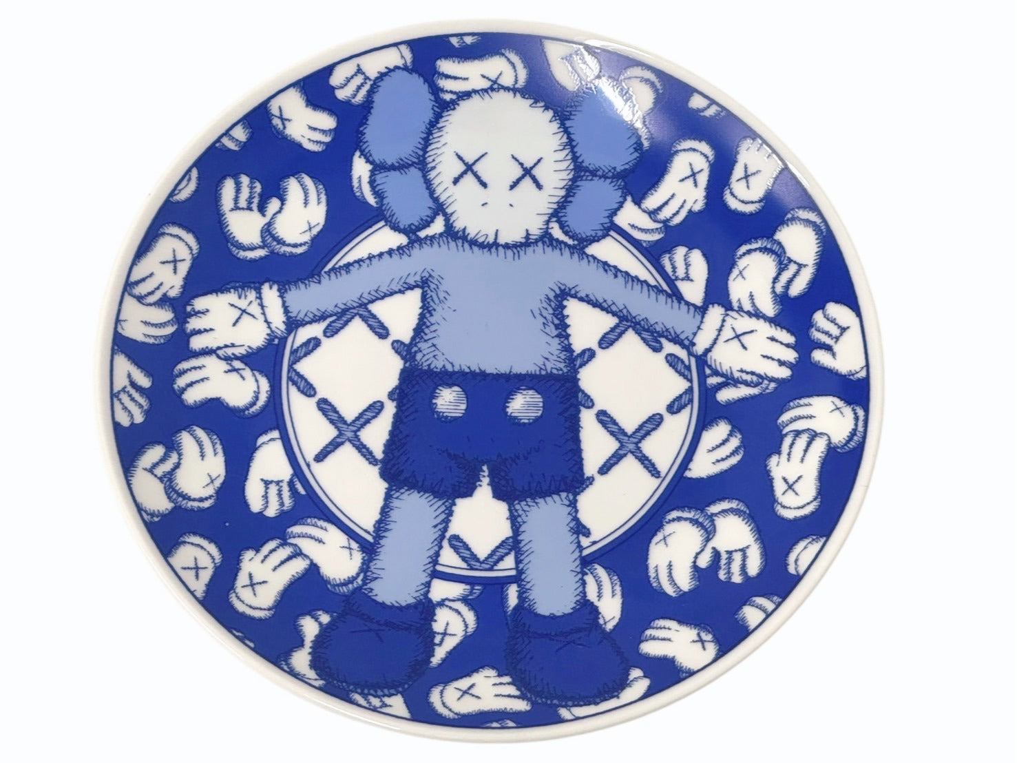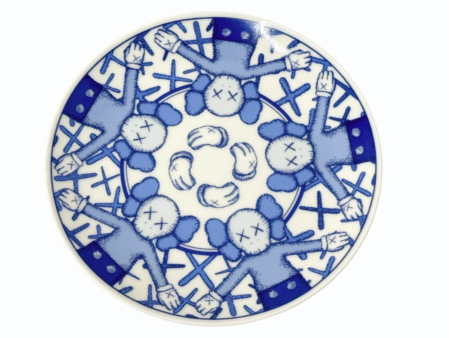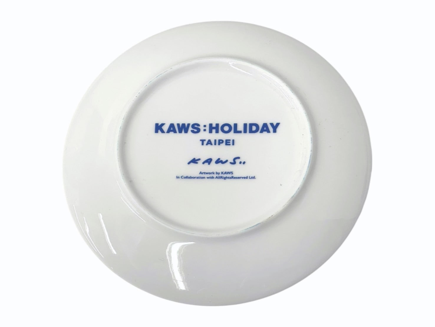 新品未使用 KWAS カウズ KAWS HOLIDAY TAIPEI カウズホリデイ 台北 4枚セット 総柄 皿 ブルー ホワイト 中古 4b005113