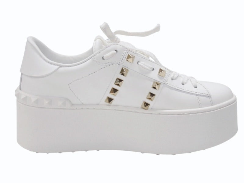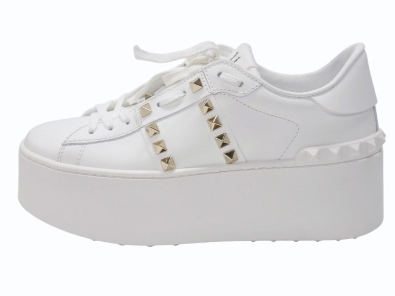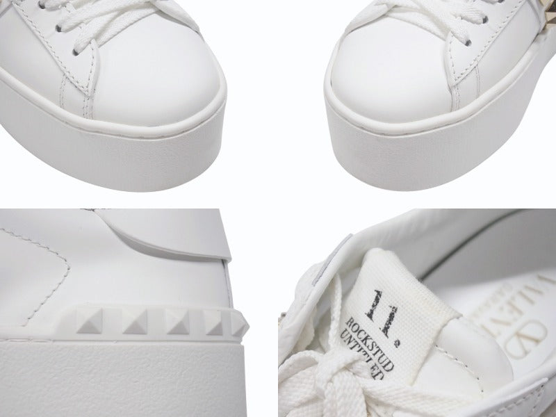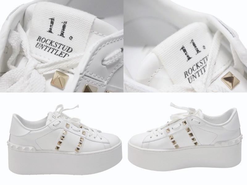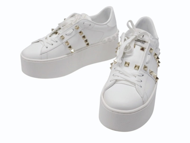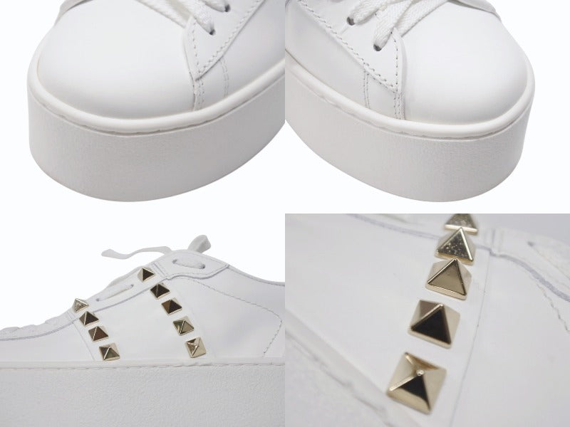 極美品 Valentino Garavani ヴァレンティノ ガラヴァーニ スタッズ スニーカー ホワイト レザー 靴 ロゴ サイズ35 1/2 SZGG8W2 中古 4b006277