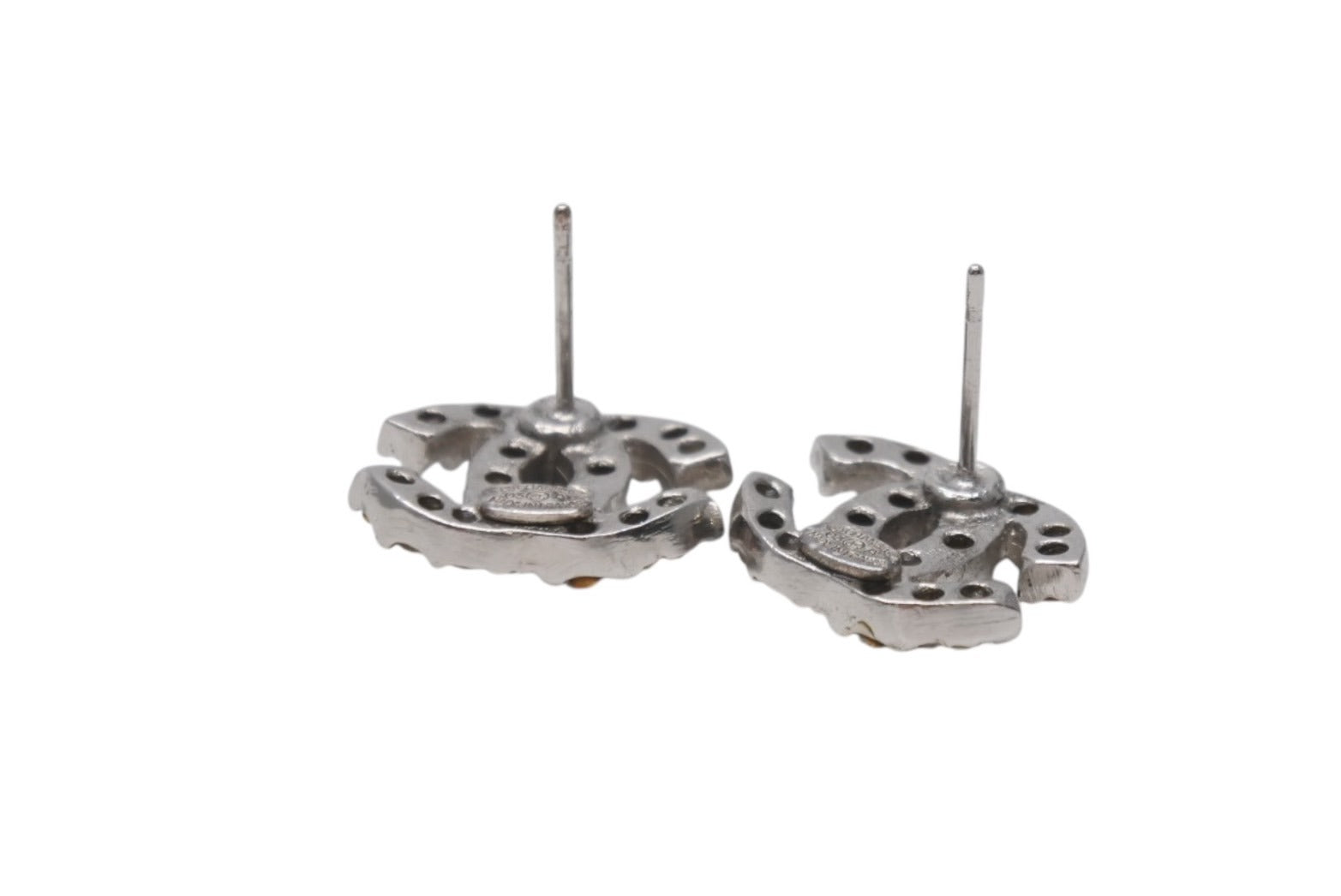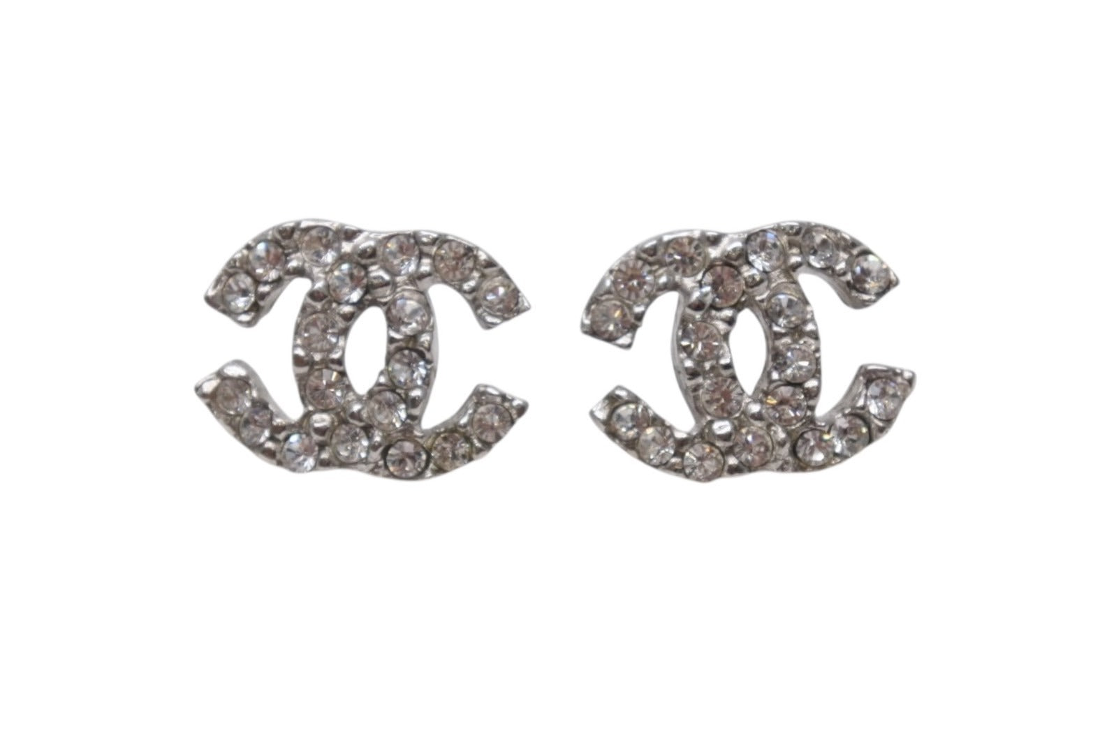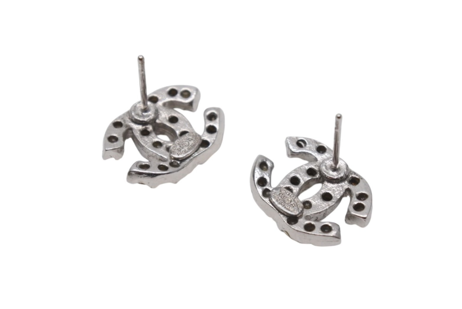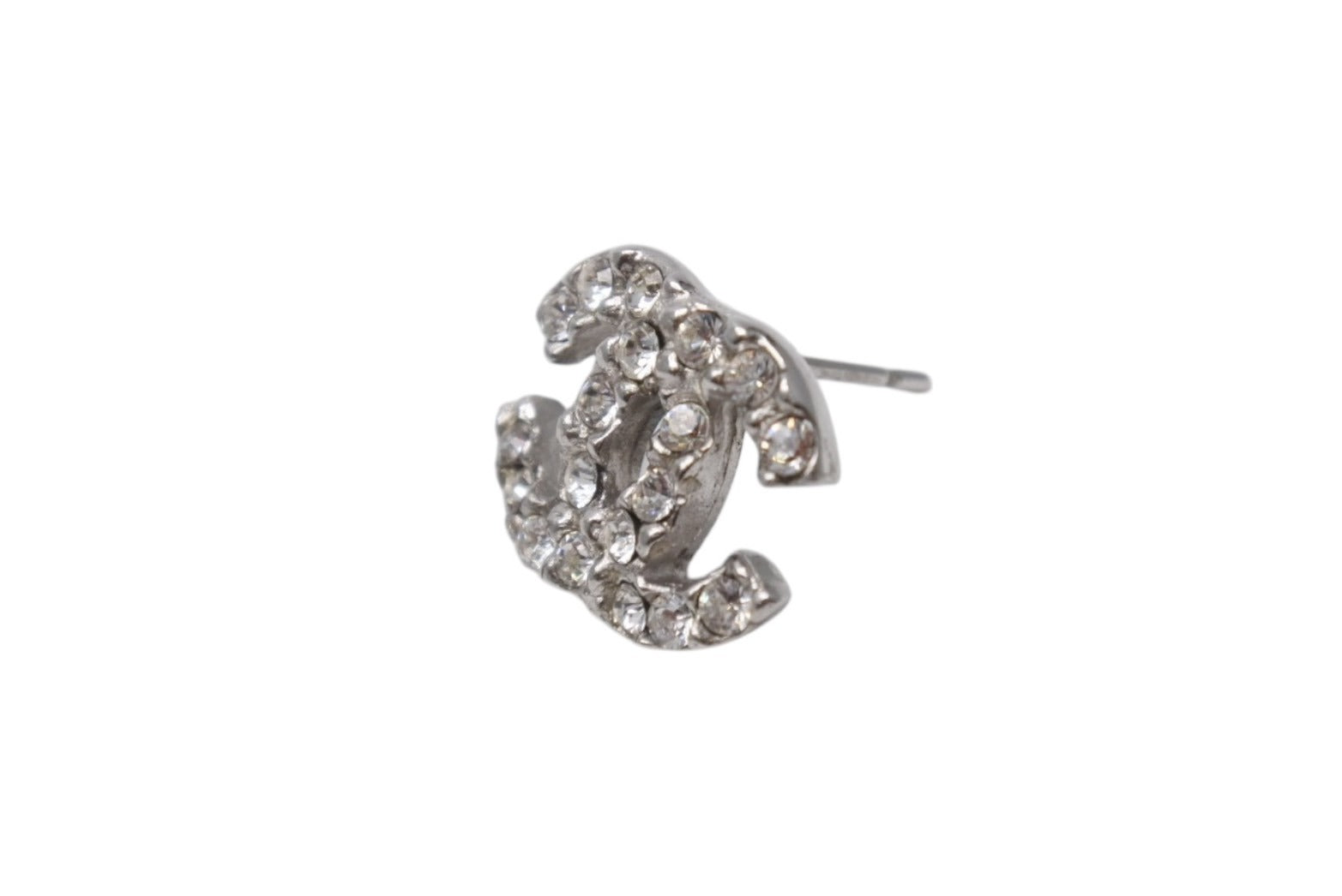 極美品 CHANEL シャネル Coco Mark ココマーク ラインストーン ピアス 03A 刻印 1.7g シルバーカラー 中古 4b006431