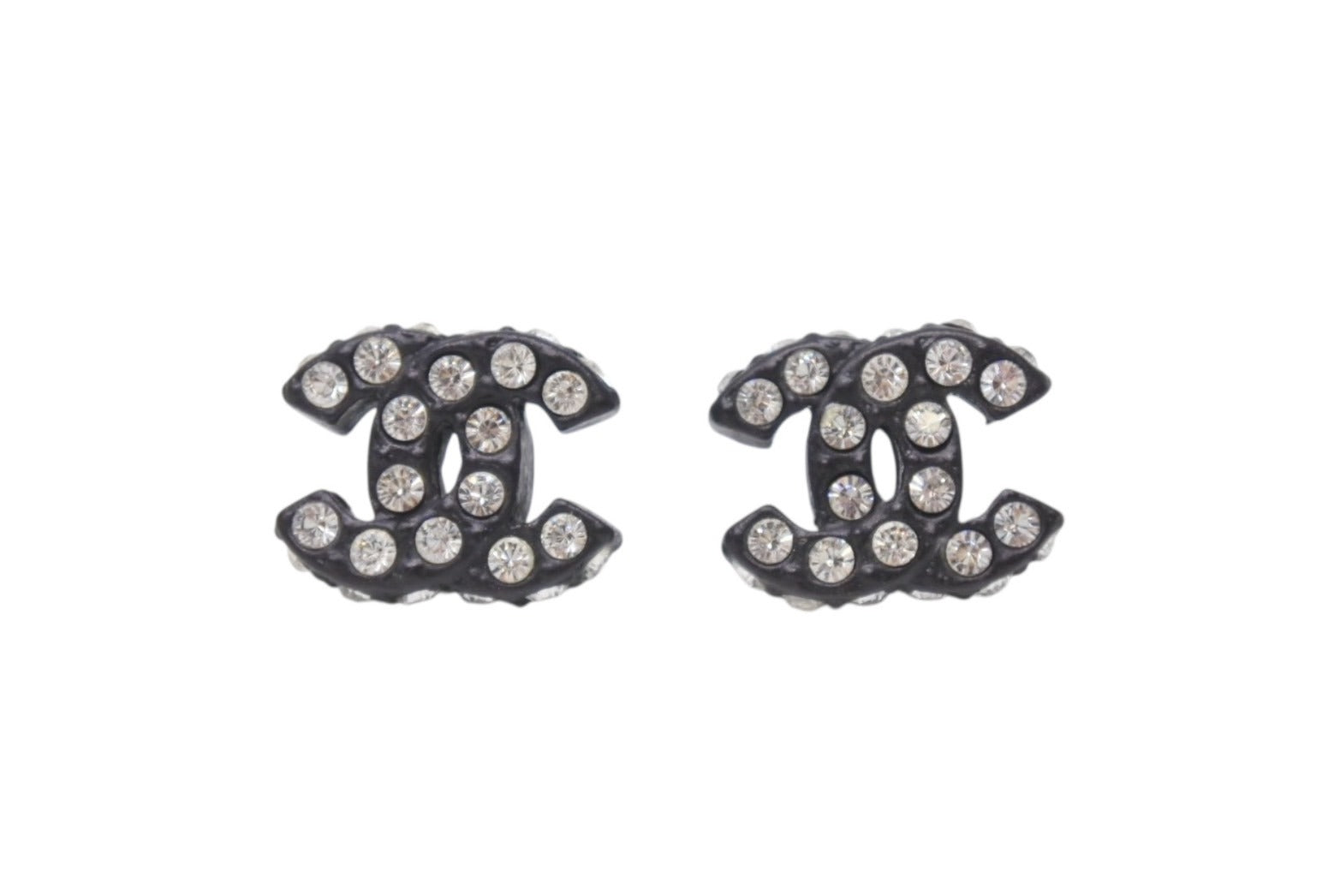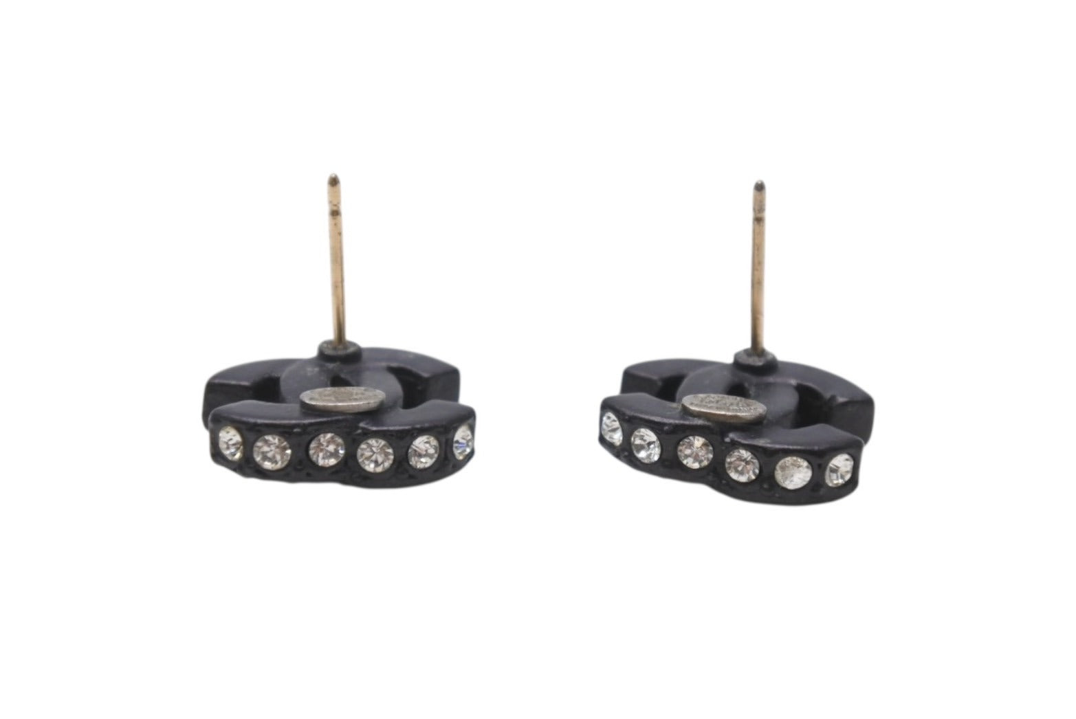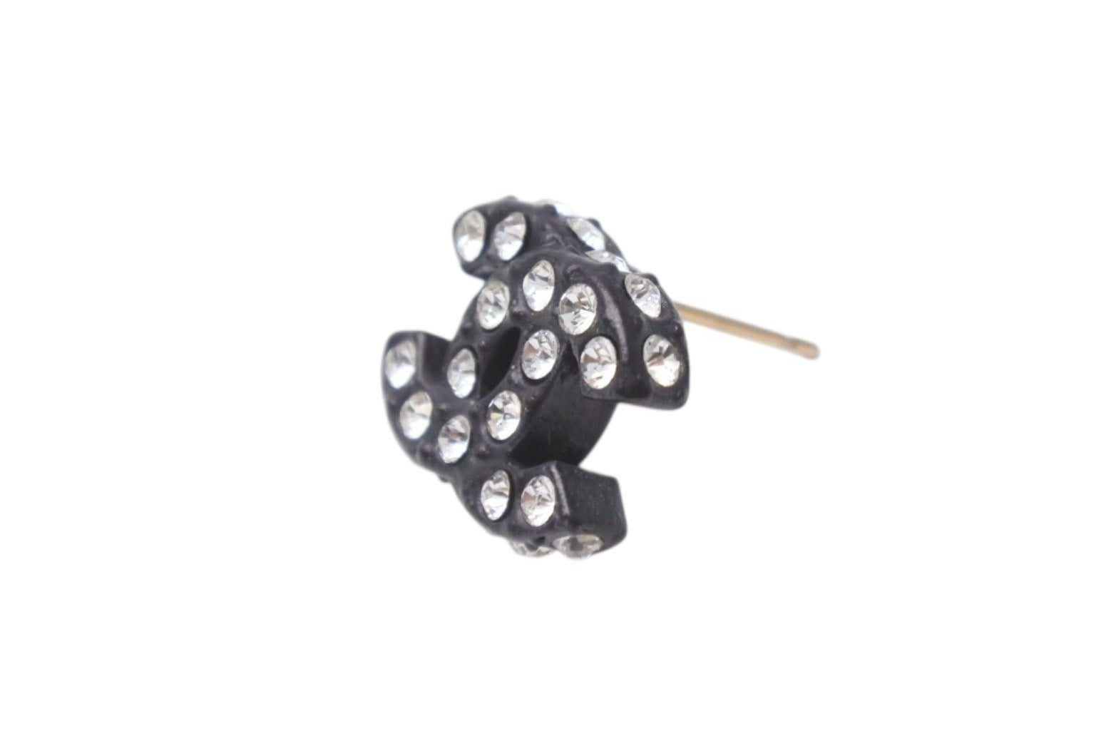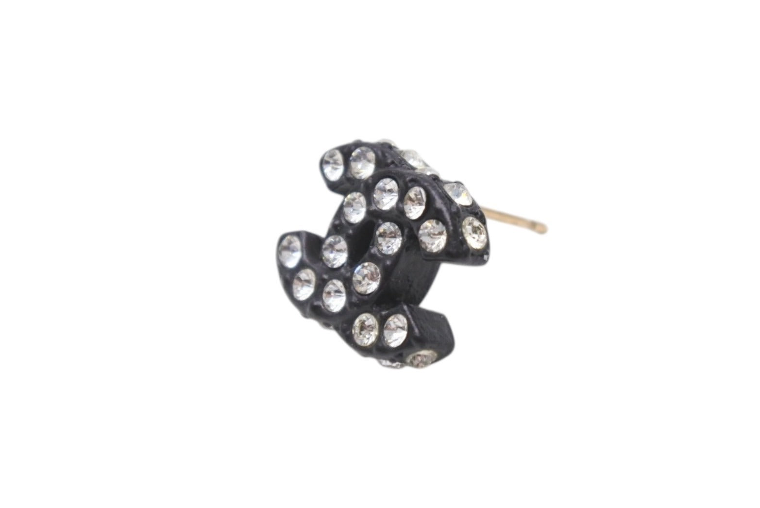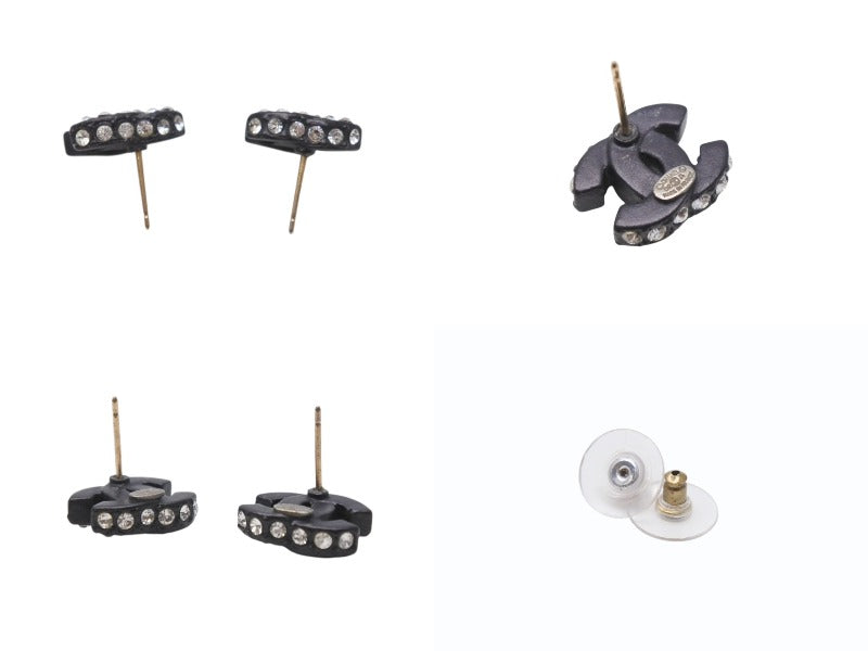 極美品 CHANEL シャネル Coco Mark ココマーク ピアス 02A 刻印 3.1g ラインストーン ブラックカラー アクセサリー 中古 4b006444