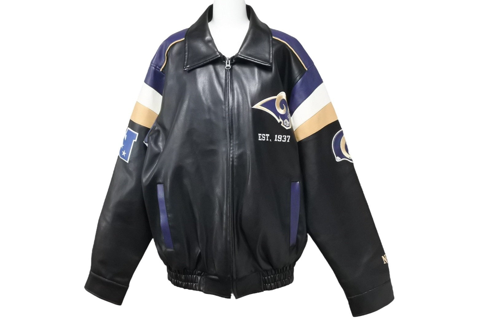 ST.LOUIS RAMS セントルイスラムズ レザージャケット ライダース 58RG0034LA00U053 ネイビー ブラック ベージュ S 美品 中古 51725