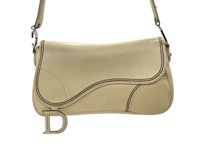 極美品 Christian Dior クリスチャンディオール サドルワンショルダーバッグ 01-RU-0055 ベージュ系 ロゴ金具 シルバー金具 中古 4b006924