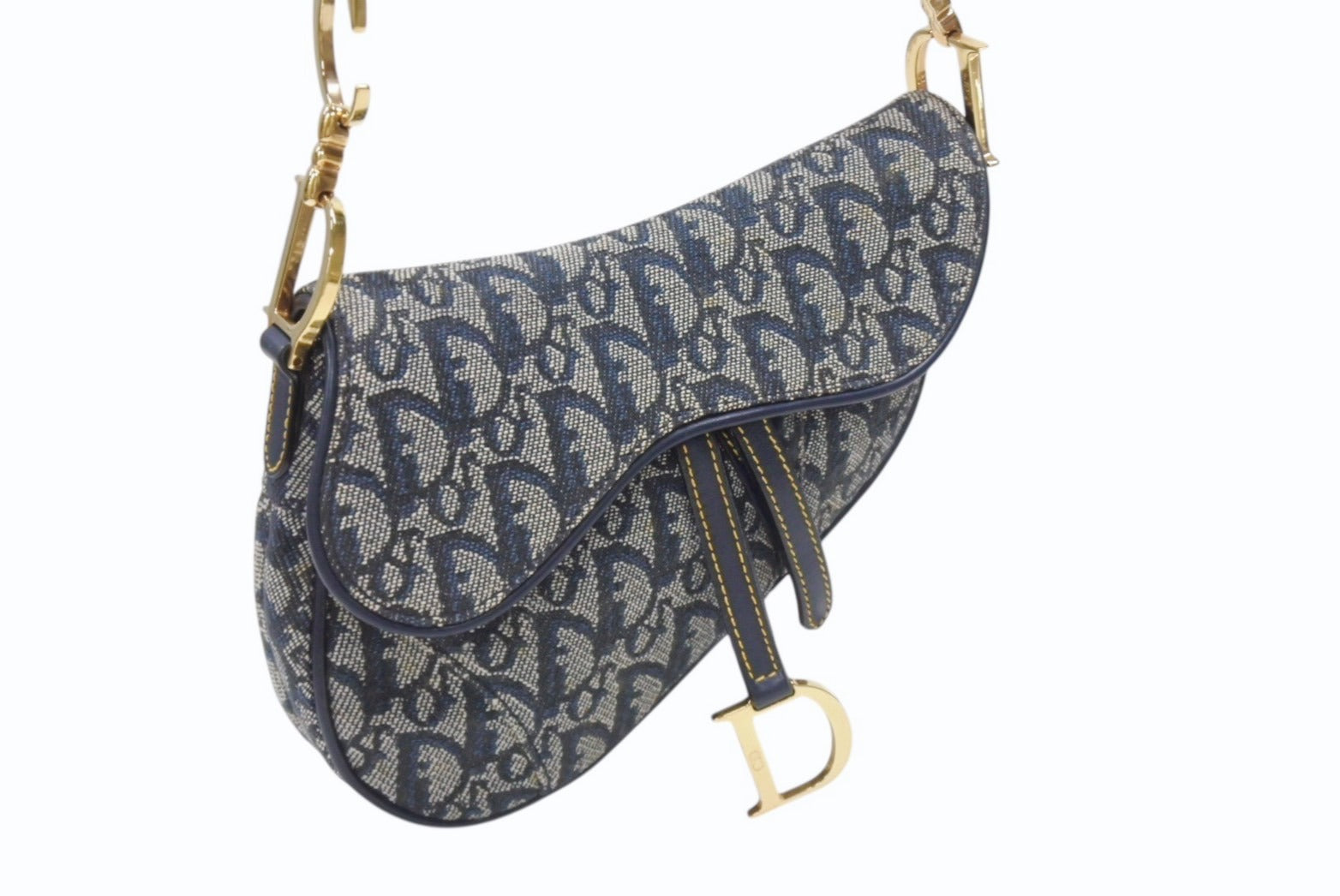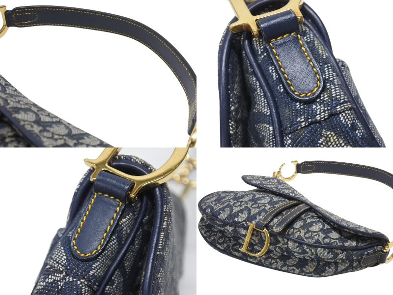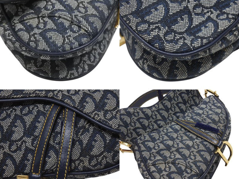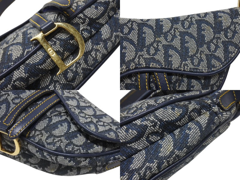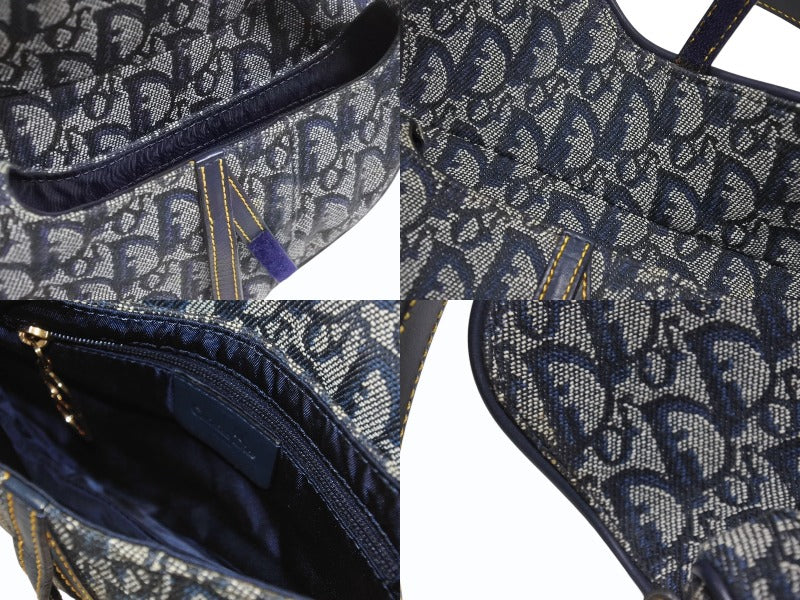 Christian Dior クリスチャンディオール ワンショルダーバッグ サドルバッグ トロッター ガリアーノ期 キャンバス レザー ネイビー 美品 中古 4b007134