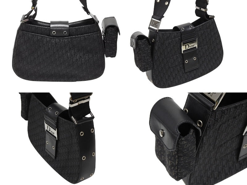 CHRISTIAN DIOR クリスチャンディオール トロッターライン ストリートシック ショルダーバッグ 11-MA-23 ブラック 美品 中古 4b008298