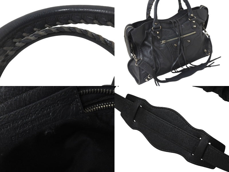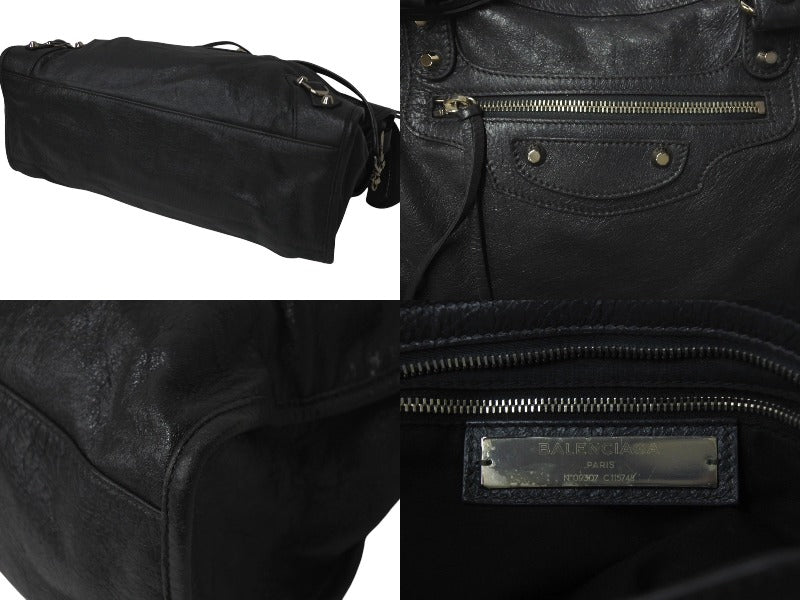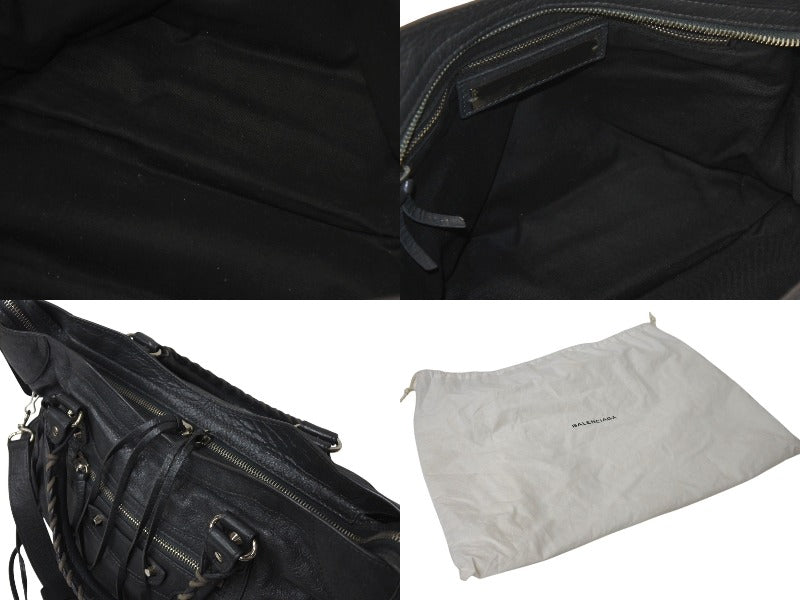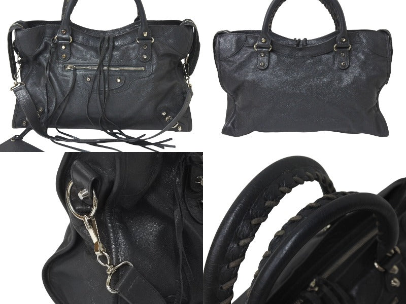BALENCIAGA バレンシアガ The City ザシティ トートバッグ ハンドバッグ レザー グレー シルバー金具 美品 中古 4b001388