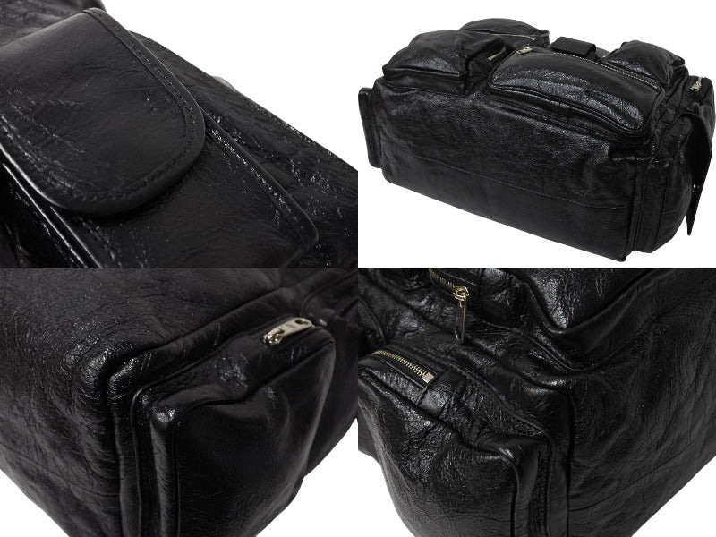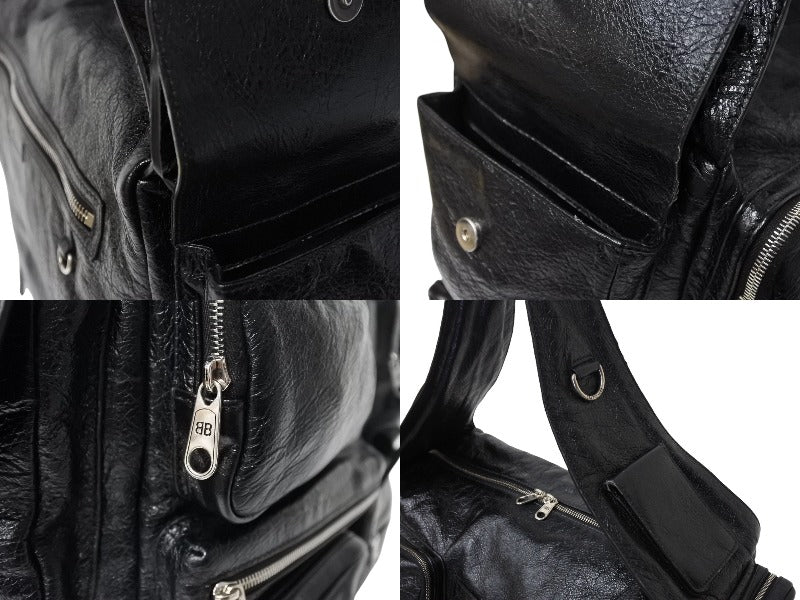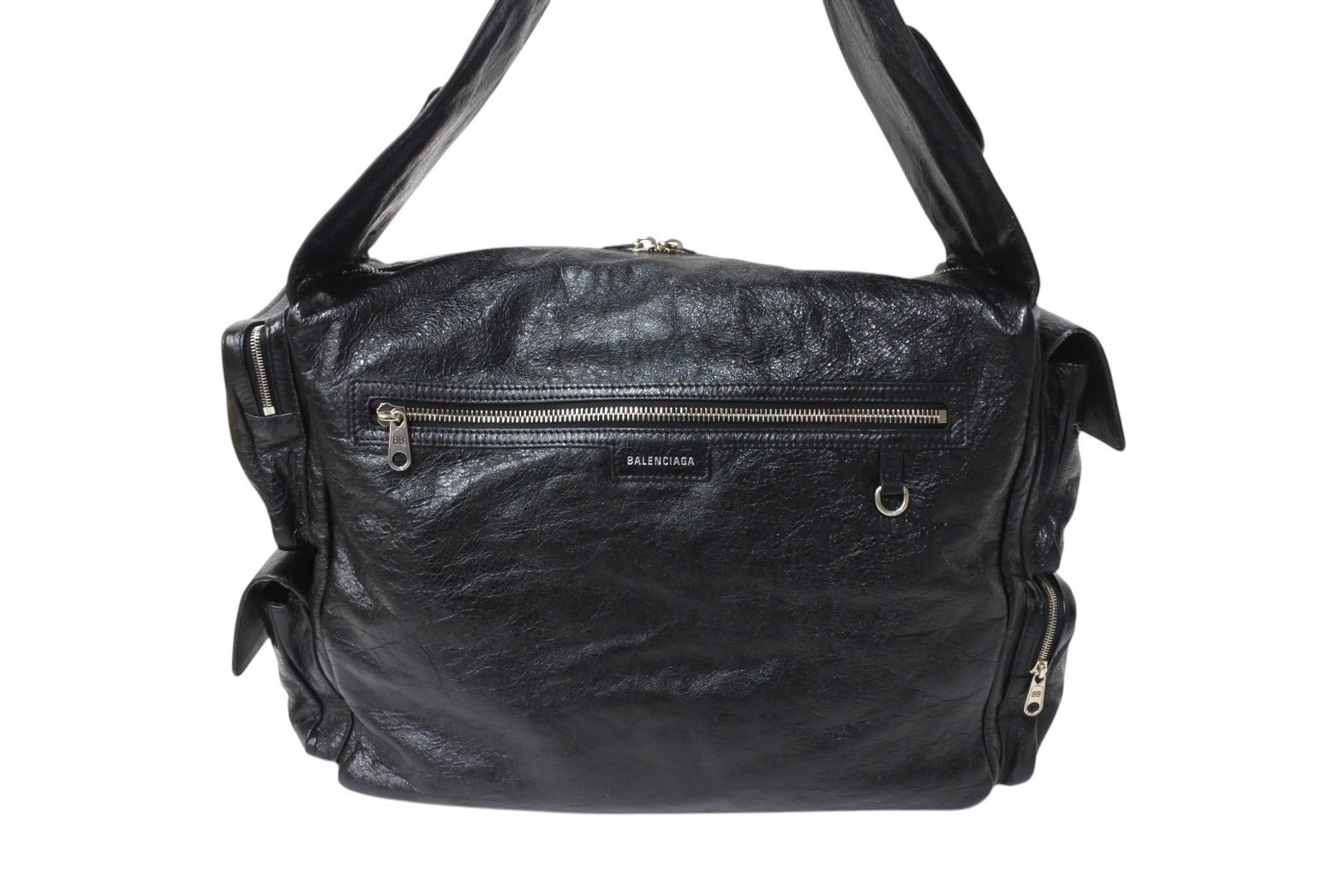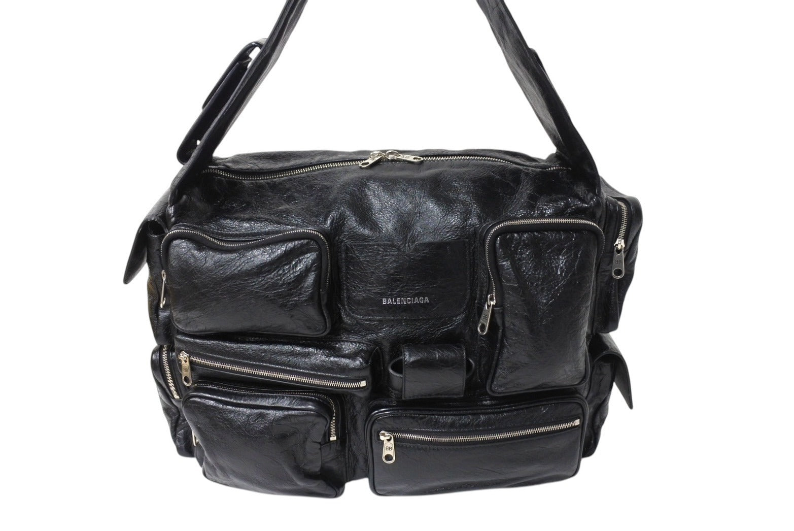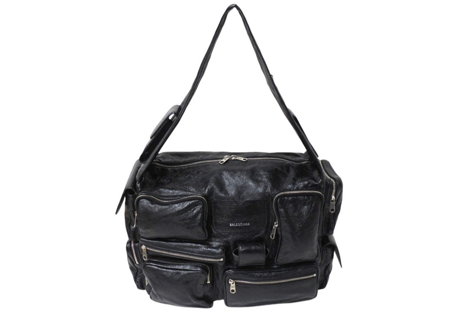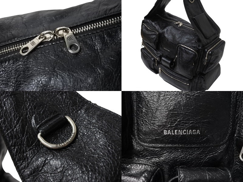 アンティーク調シルバーメタルパーツ付きのSuperbusy Large スリングバッグはブラックのアリーナラムスキン製で、Balenciagaの22年秋「The Lost Tape」コレクションのルック38に掲載された商品です。