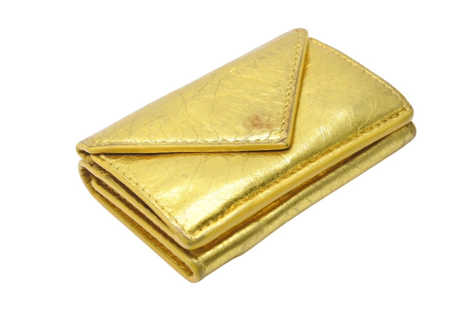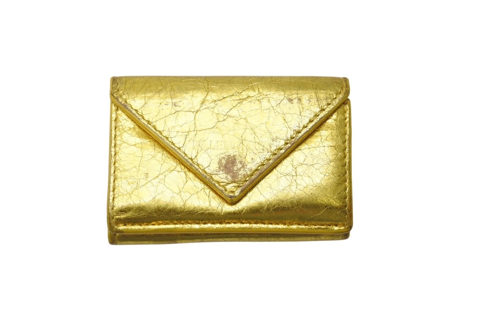 BALENCIAGA バレンシアガ ペーパー ミニ ウォレット 三つ折り財布 ゴールド レザー 391446 シルバー金具 ロゴ 財布 良品 中古 4c071755