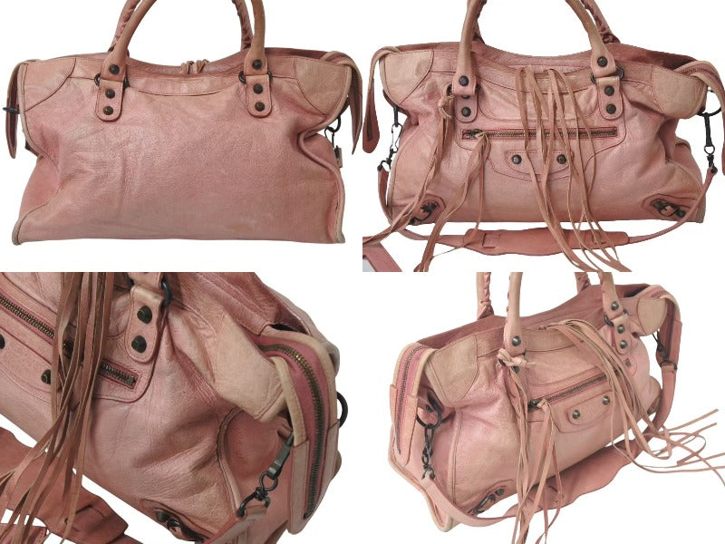 全体的にスレ、色褪せあり。ハンドル部分使用感と変色あり。内側汚れあり。ショルダー裏面ノリ跡あり。
