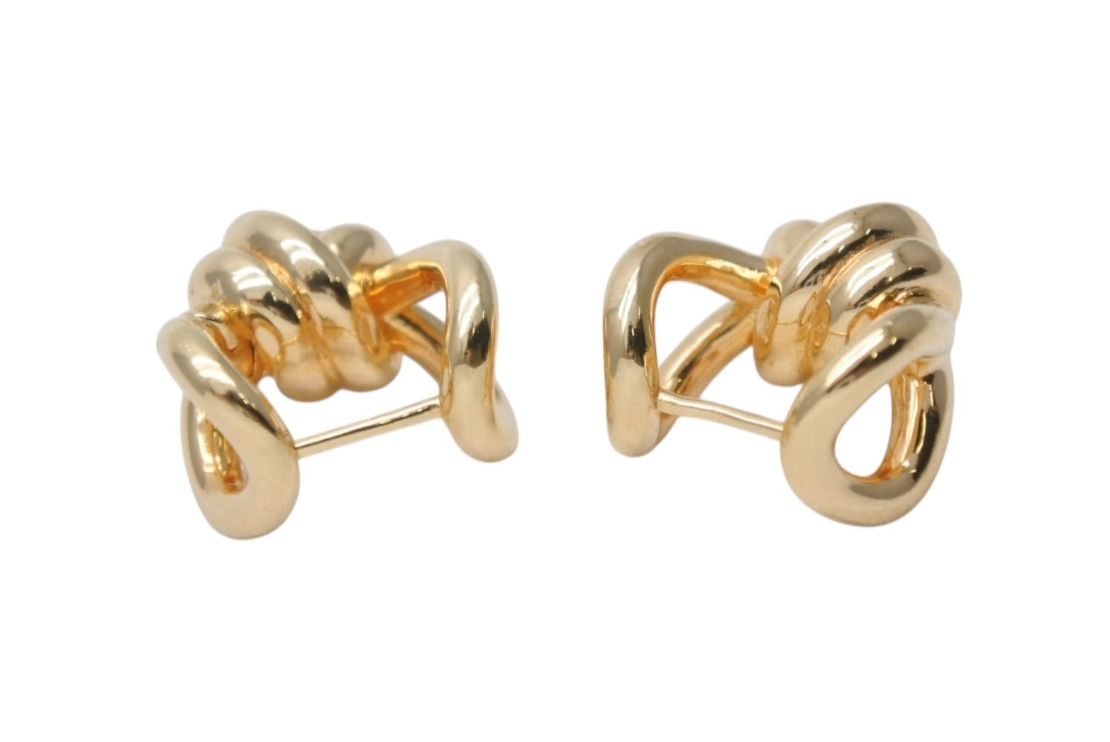 アイコニックなノットが付いた、18Kゴールド仕上げスターリングシルバーのフープピアスです。