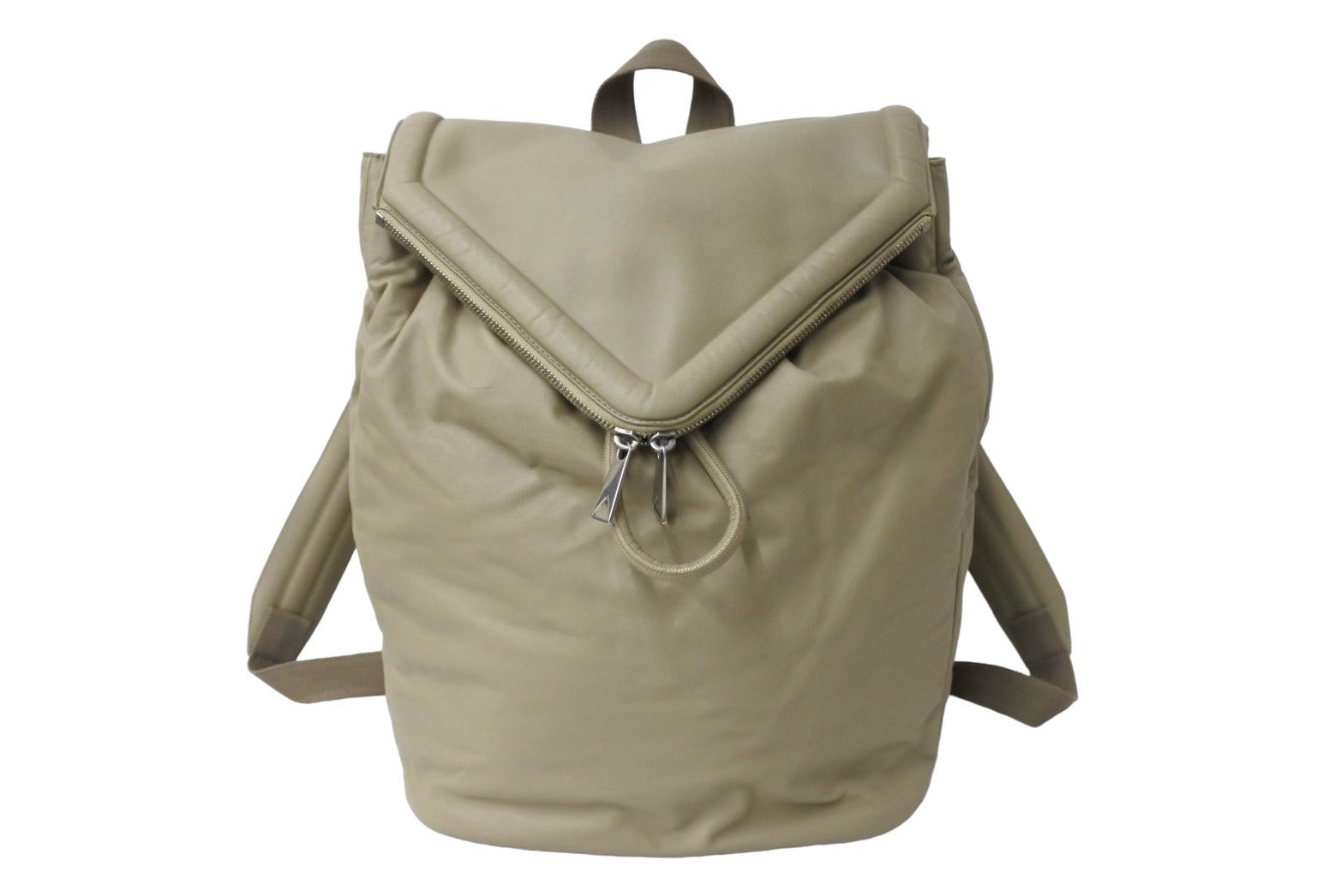 トライアングルのフラップが特徴的なシンプルかつユニークなバックパック。手触りの良い滑らかなカーフスキンを使用。カジュアルになりがちなバックパックもブランドらしくシンプルで洗練された印象に。ドローストリング開閉で大きく開きお荷物の取り出しやすさも嬉しいポイントです。