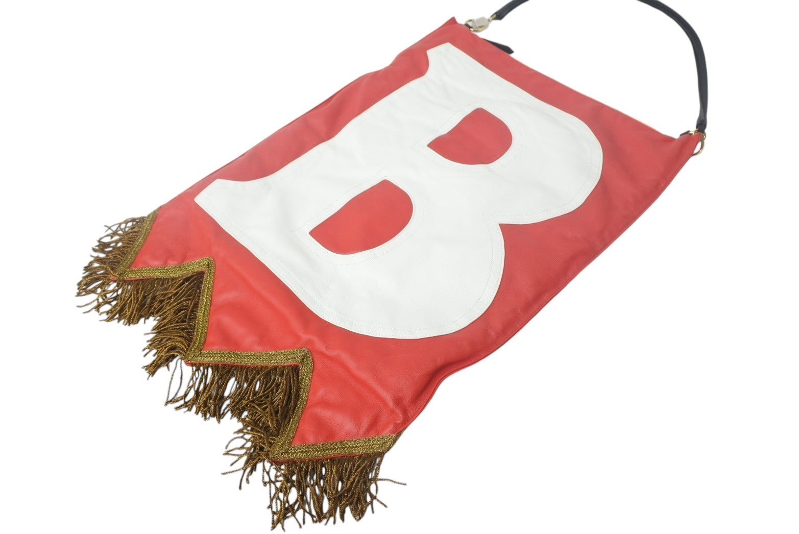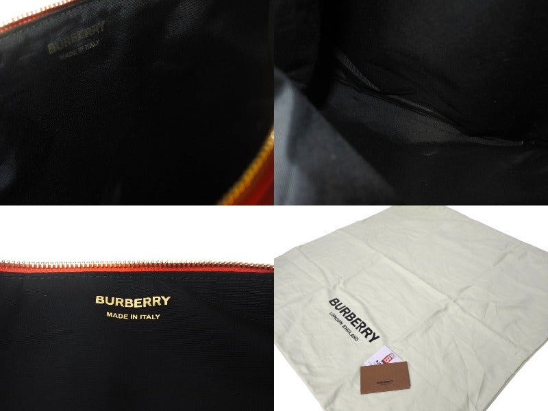 Burberry バーバリー フラッグバッグ クラッチバッグ 旗 イタリア製 レザー レッド ホワイト ゴールド金具 美品 中古 4c068608