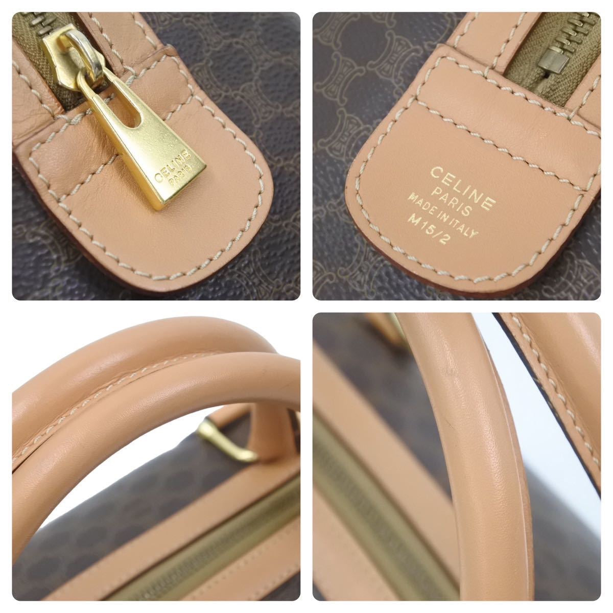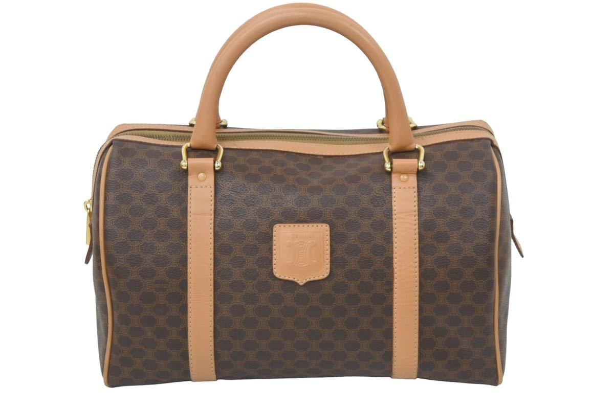 CELINE セリーヌ マカダム柄 ボストンバッグ ブラウン ゴールド 美品 中古品 46273