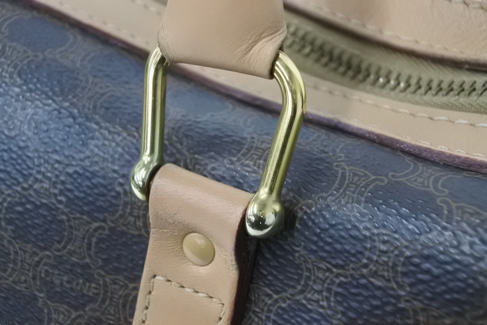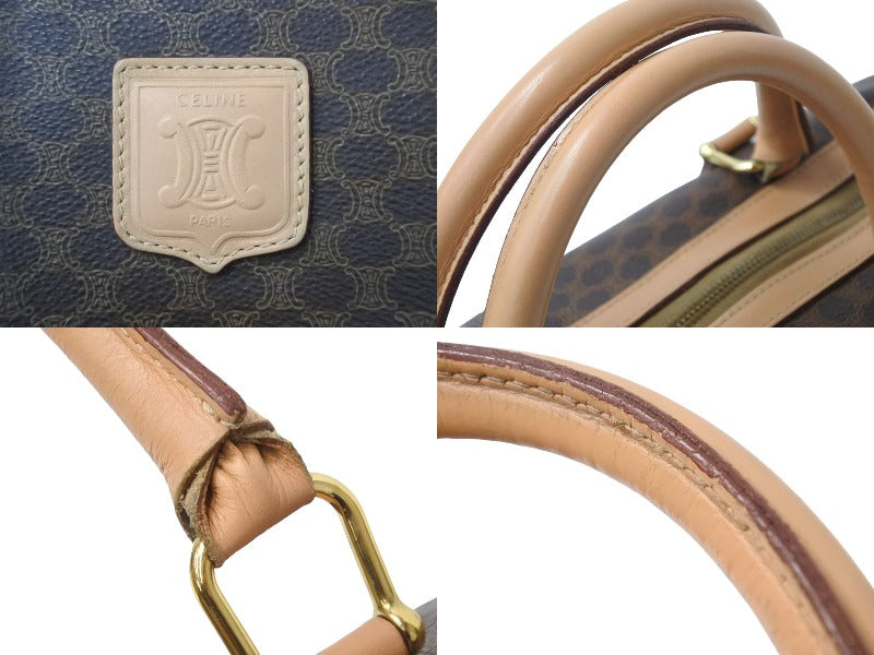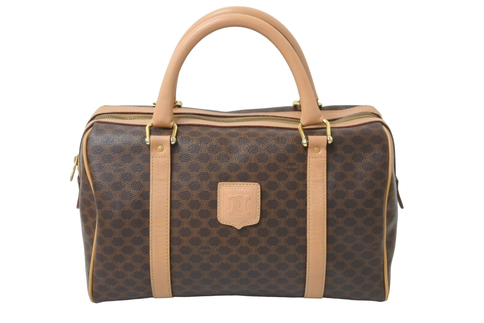 CELINE セリーヌ ボストンバッグ ヴィンテージ マカダム柄 ブラウン ゴールド金具 美品 中古 49970